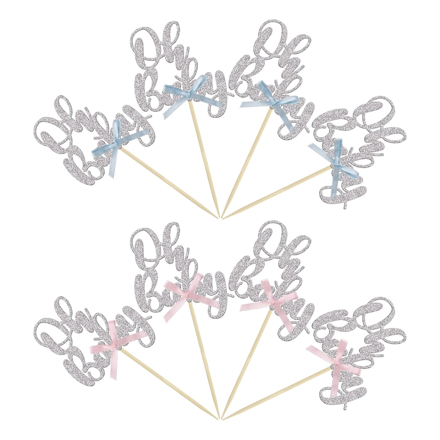 • 💗💗These Silver Oh Baby with Bowknot Cupcake Toppers are so cute and good for oh baby theme party, gender reveal party, baby shower theme party, kids birthday party cupcake decorations. They can make your cupcake more attractive and bring the fun to your party. You can also apply them for ice cream, fruits, cookies and other desserts.