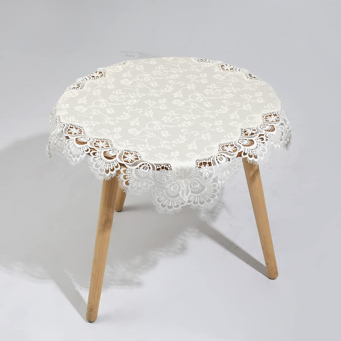 • Material: Made of high quality polyester,not easy to wrinkle and shrink, makes you table beautiful.Please pay attention, 22x22 inch small tablecloth top didn't have lace part.