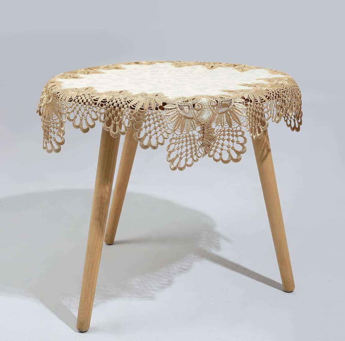 • Material: Made of high quality polyester,not easy to wrinkle and shrink, makes you table beautiful.Please pay attention, 22x22 inch small tablecloth top didn't have lace part.
