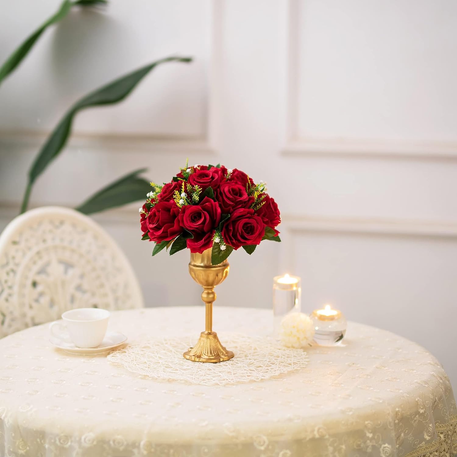 BLOSMON Flower Balls Wedding Rose Centerpieces: 2 Pcs Crimson Fake Flowers Kissing Balls Decor Artificial Floral Arrangements Flower Bouquet of Roses Home Party Table DIY Decorations