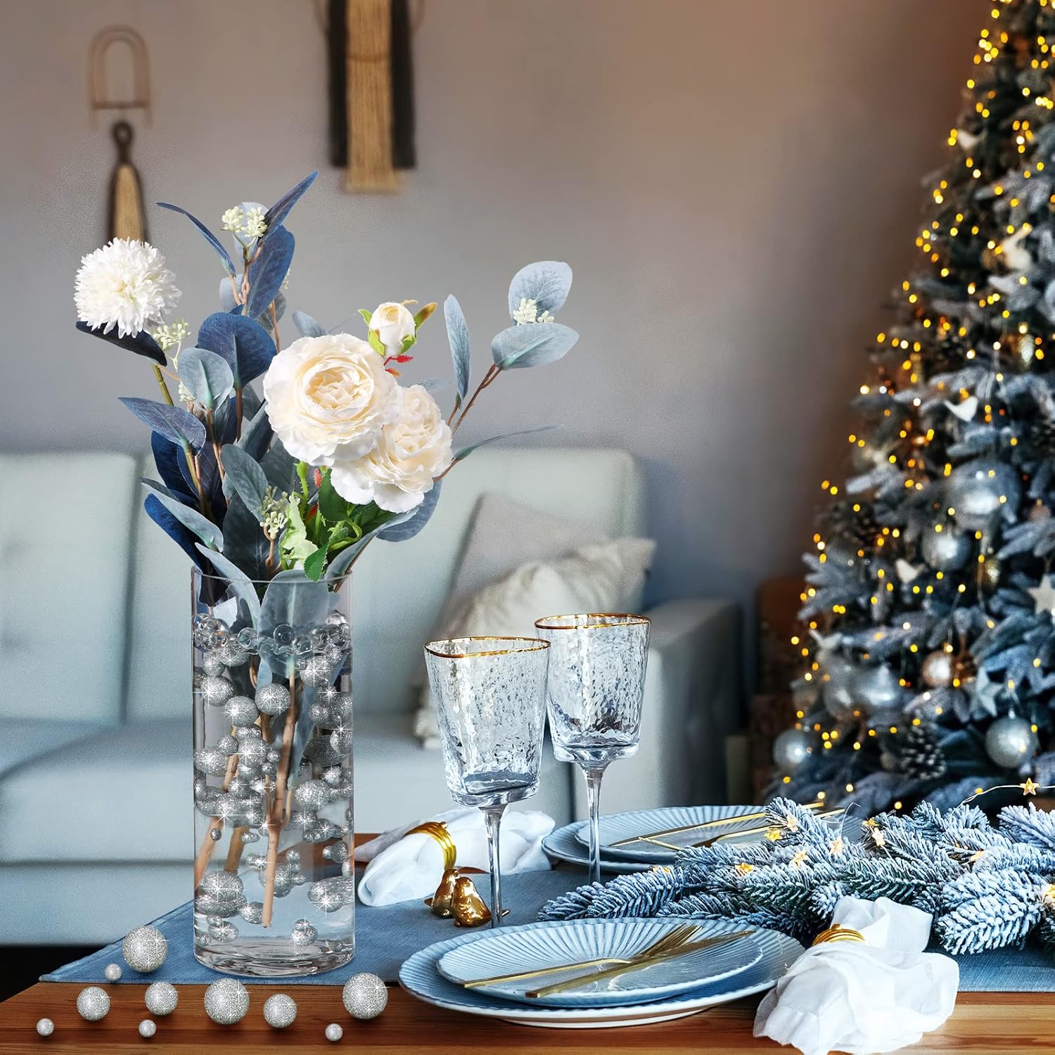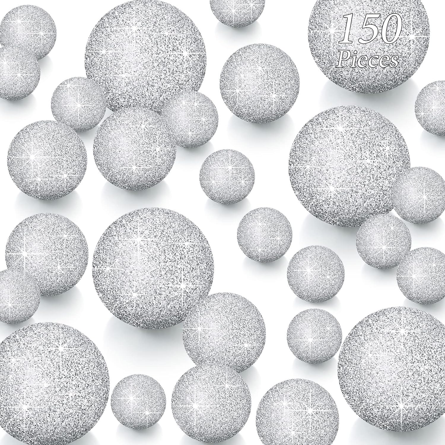 150 Pieces Vase Filler Faux Pearls Vase Makeup Beads No Hole Gloss Bead Mixed Sizes Round Pearl for Home Party Wedding Decor, 8/14/20 mm(Glitter Silver)