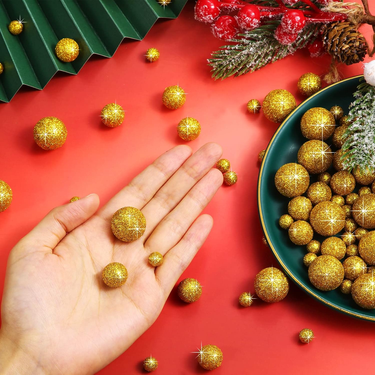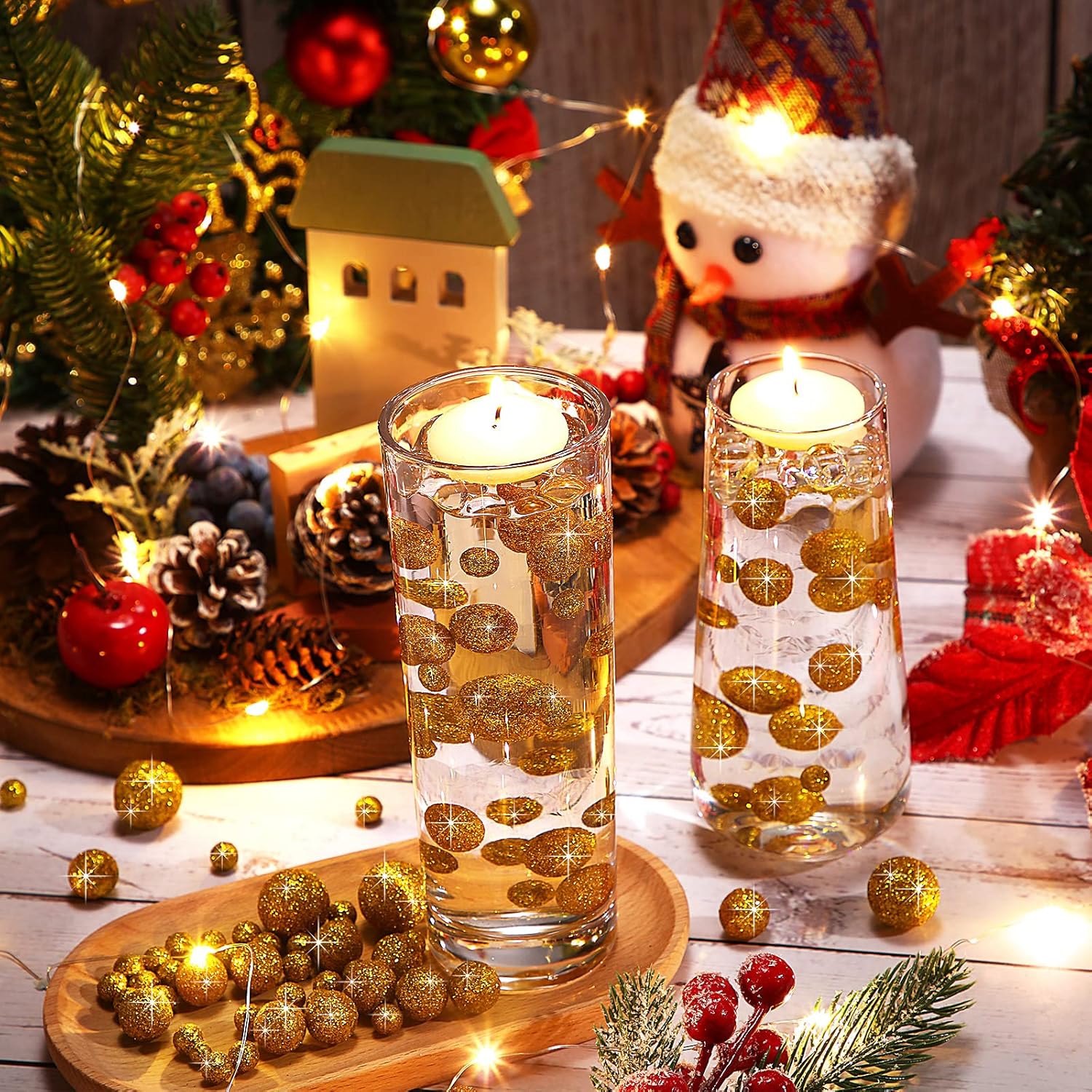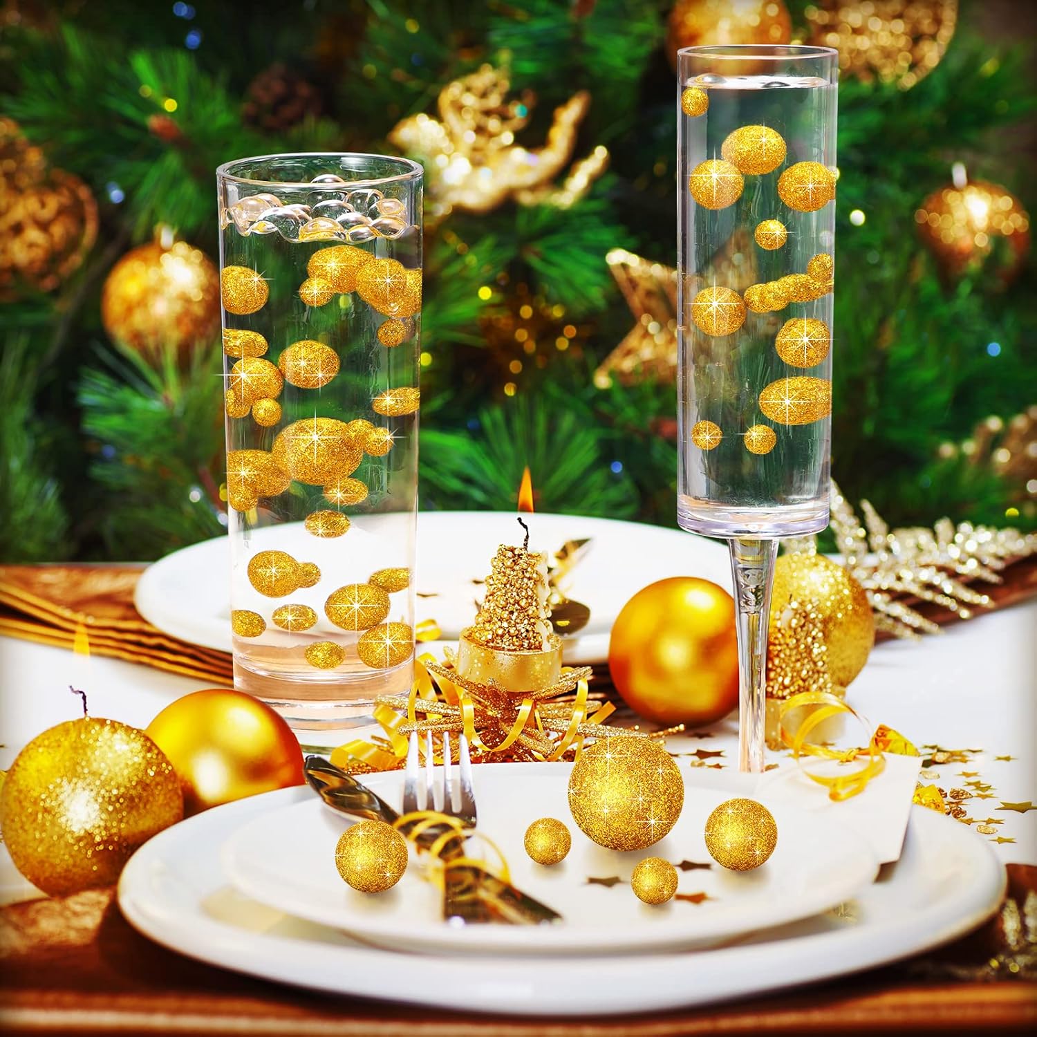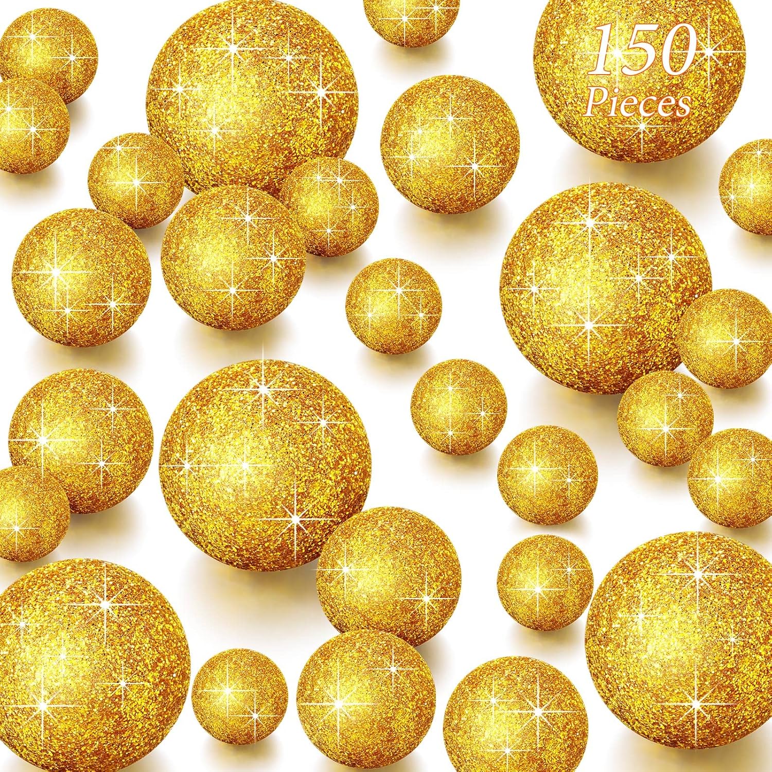 150 Pieces Vase Filler Faux Pearls Vase Makeup Beads No Hole Gloss Bead Mixed Sizes Round Pearl for Home Party Wedding Decor, 8/14/20 mm(Glitter Gold)