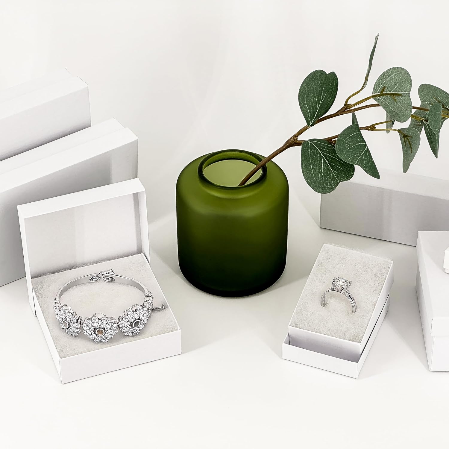 TheDisplayGuys - 25-Pack #53 Kraft Paper Cardboard Gift Boxes/Jewelry Cases w. Cotton Padding & Lid - Matte White - (5.4" x 3.9" x 1.0")