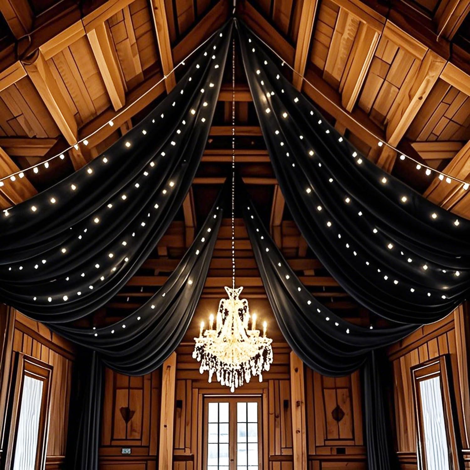 • ✿【Size - Ceiling Drapes for Weddings】Package includes 2 panels black wedding arch drapes. Size of each panel is 5FT( 60 inches) width by 20FT( 240 inches) length covering a total area of 10ft width x 20FT length. This party ceiling drapes can help your party to create a warm and elegant scenes.