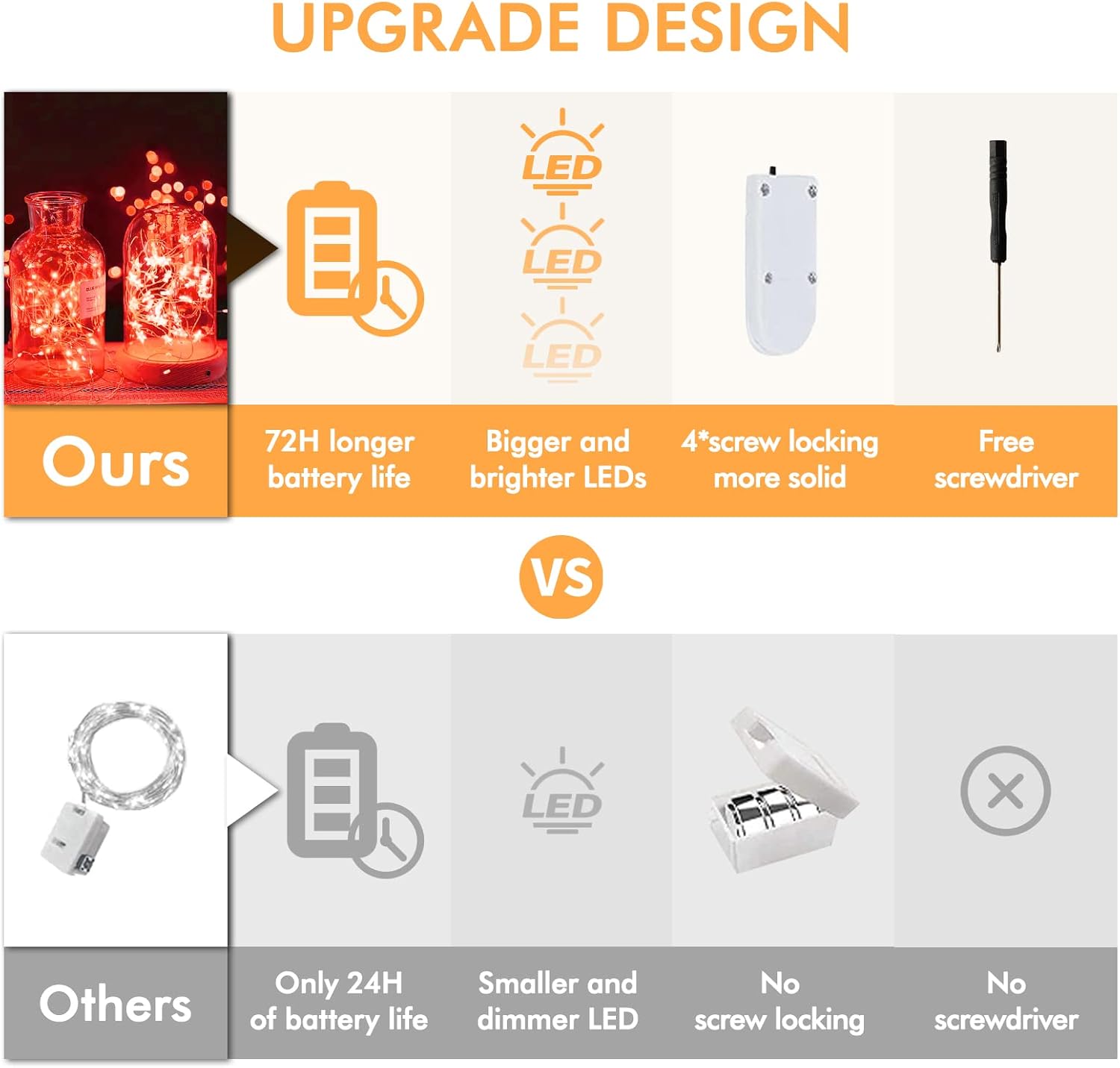 • ✨ 【Long battery life】The battery-powered fairy light battery case contains 2*CR2032 battery. The battery life is up to 72 hours, which is longer than the 24 hours of other fairy string lights. We have a screwdriver for every box of fairy lamps. When the light of your LED fairy lights becomes weak, you only need to buy new batterys and change it with a screwdriver to use it again. The operation is easy and simple