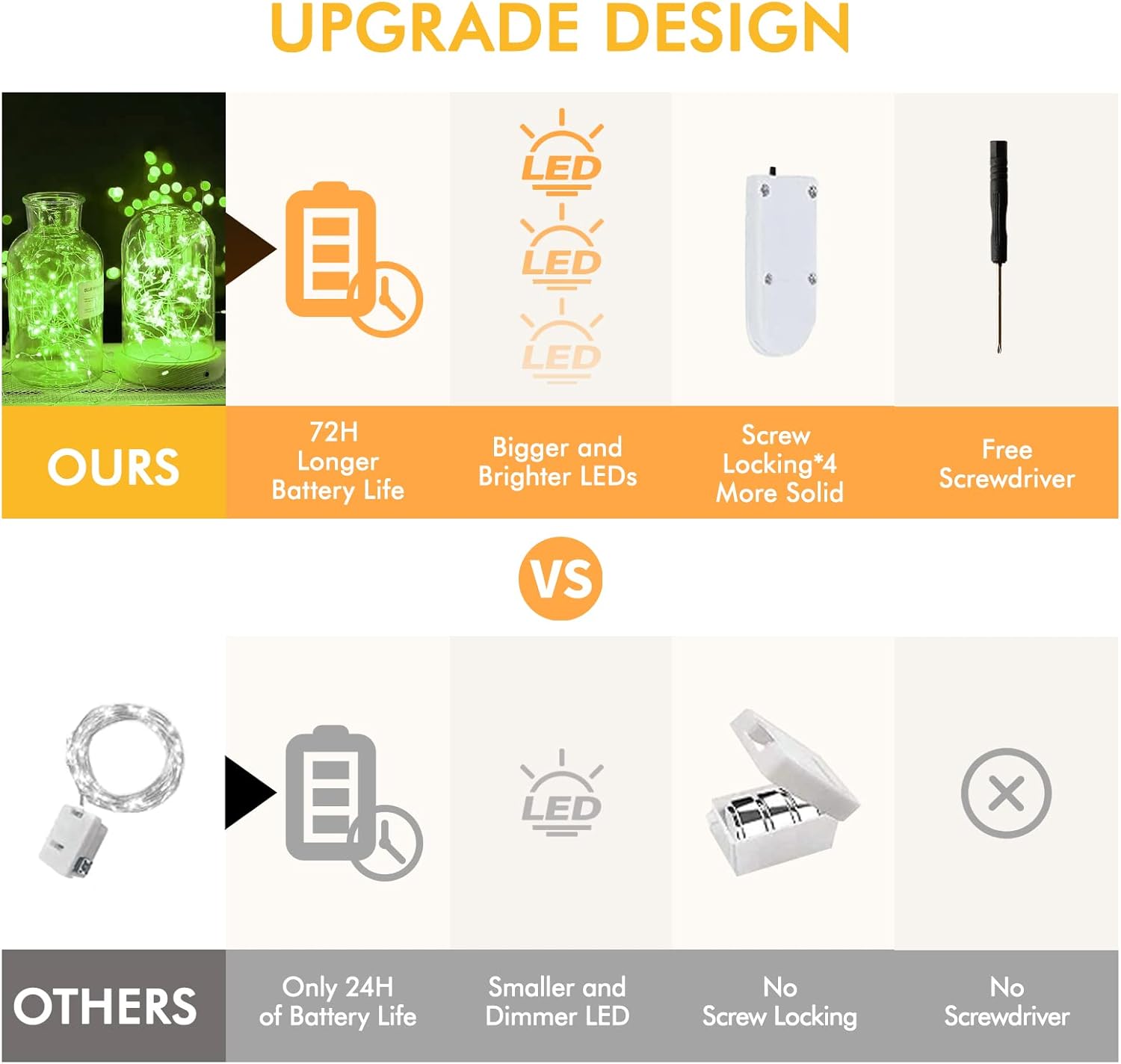 • ✨ 【Long battery life】The battery-powered fairy light battery case contains 2*CR2032 battery. The battery life is up to 72 hours, which is longer than the 24 hours of other fairy string lights. We have a screwdriver for every box of fairy lamps. When the light of your LED fairy lights becomes weak, you only need to buy new batterys and change it with a screwdriver to use it again. The operation is easy and simple