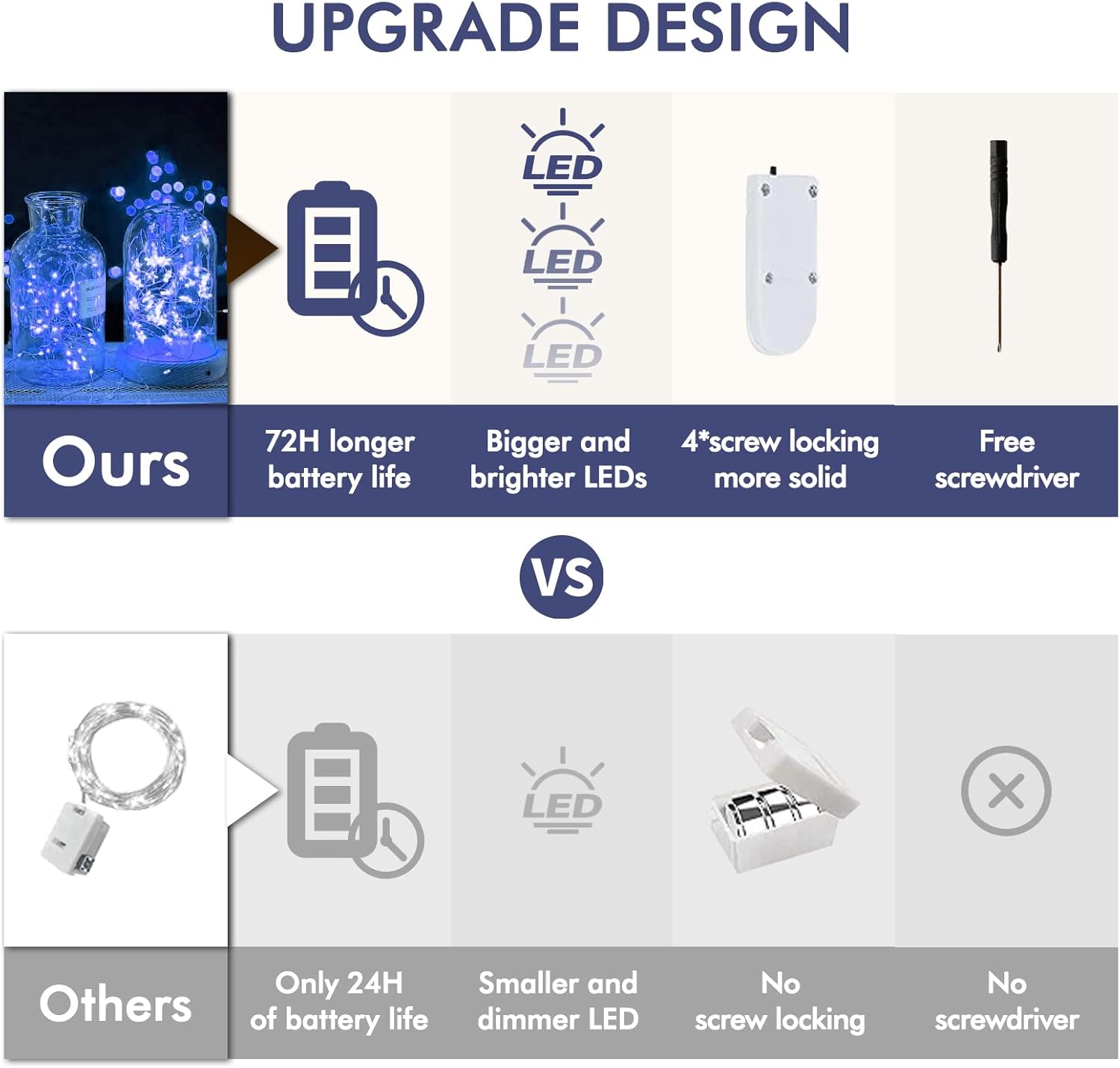 • ✨ 【Long battery life】The battery-powered fairy light battery case contains 2*CR2032 battery. The battery life is up to 72 hours, which is longer than the 24 hours of other fairy string lights. We have a screwdriver for every box of fairy lamps. When the light of your LED fairy lights becomes weak, you only need to buy new batterys and change it with a screwdriver to use it again. The operation is easy and simple