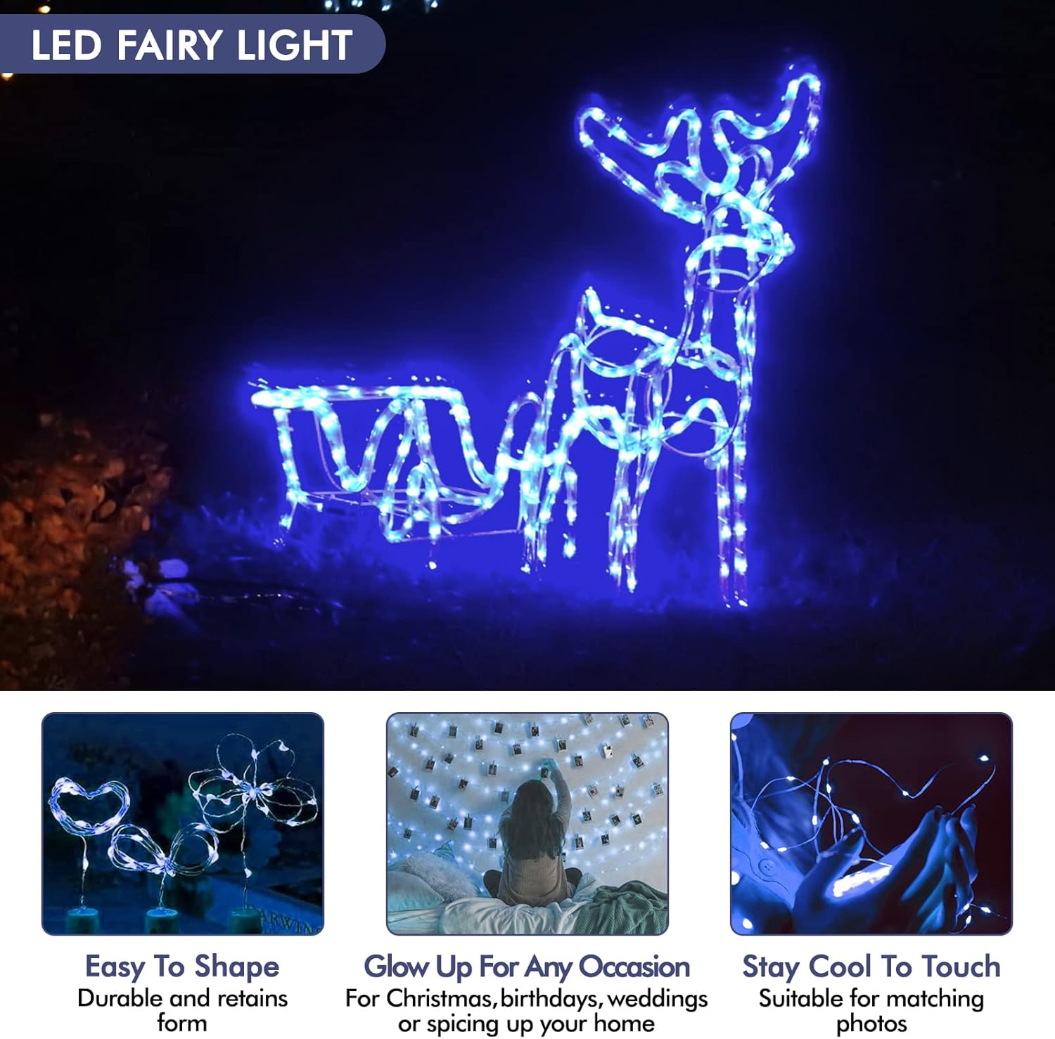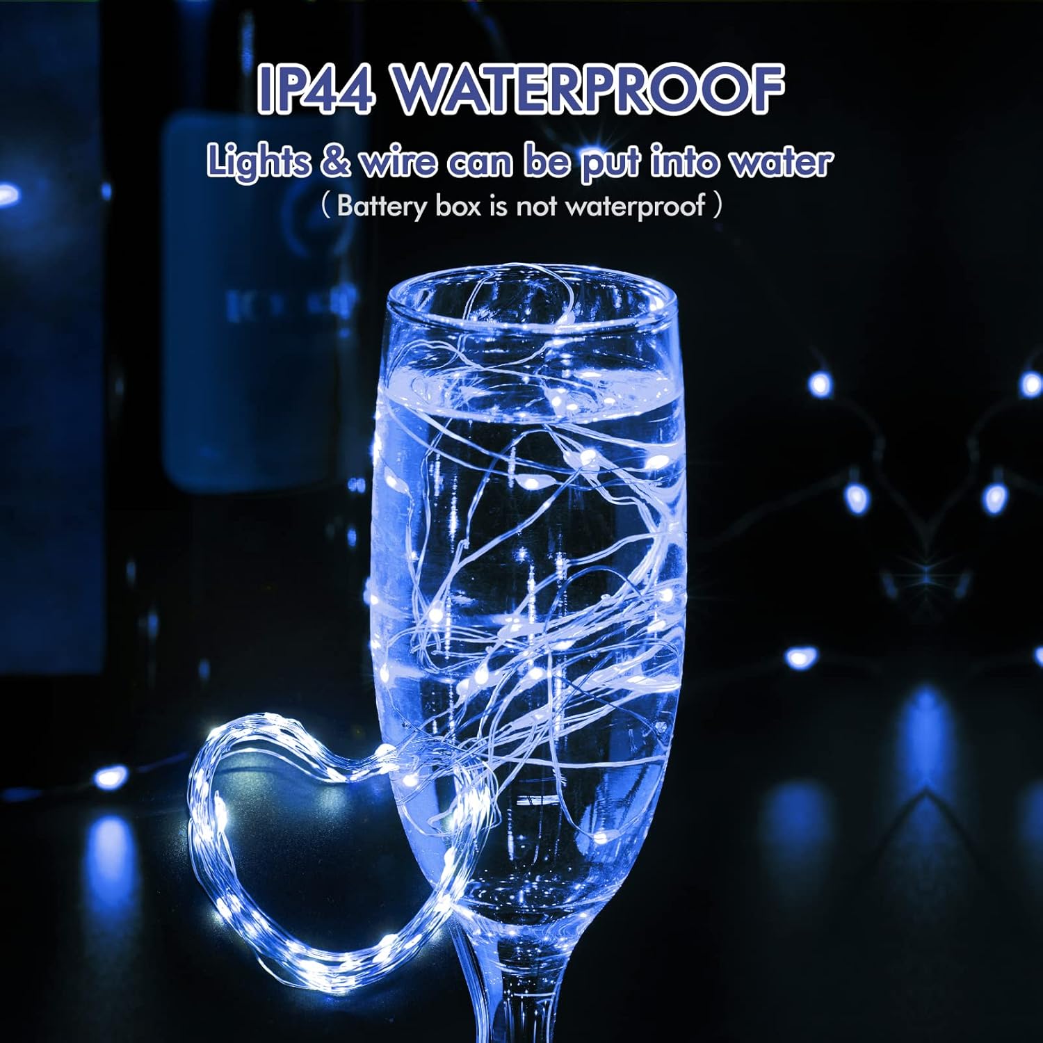 • ✨【12 Packs High-Quality Fairy Lights】 There are 12 packs of LED blue fairy lights inside each box, Each string of fairy string lights is equipped with 20 super bright mini LDE lamp beads, The light flashes 360 degrees without glare and soft light to protect your eyes. The fairy lamp wire is 7ft long and made of soft copper wire. It can be bent into any shape you like or wrapped around anything you want to decorate. These fairy lights can make everything that is decorated by them dazzlin