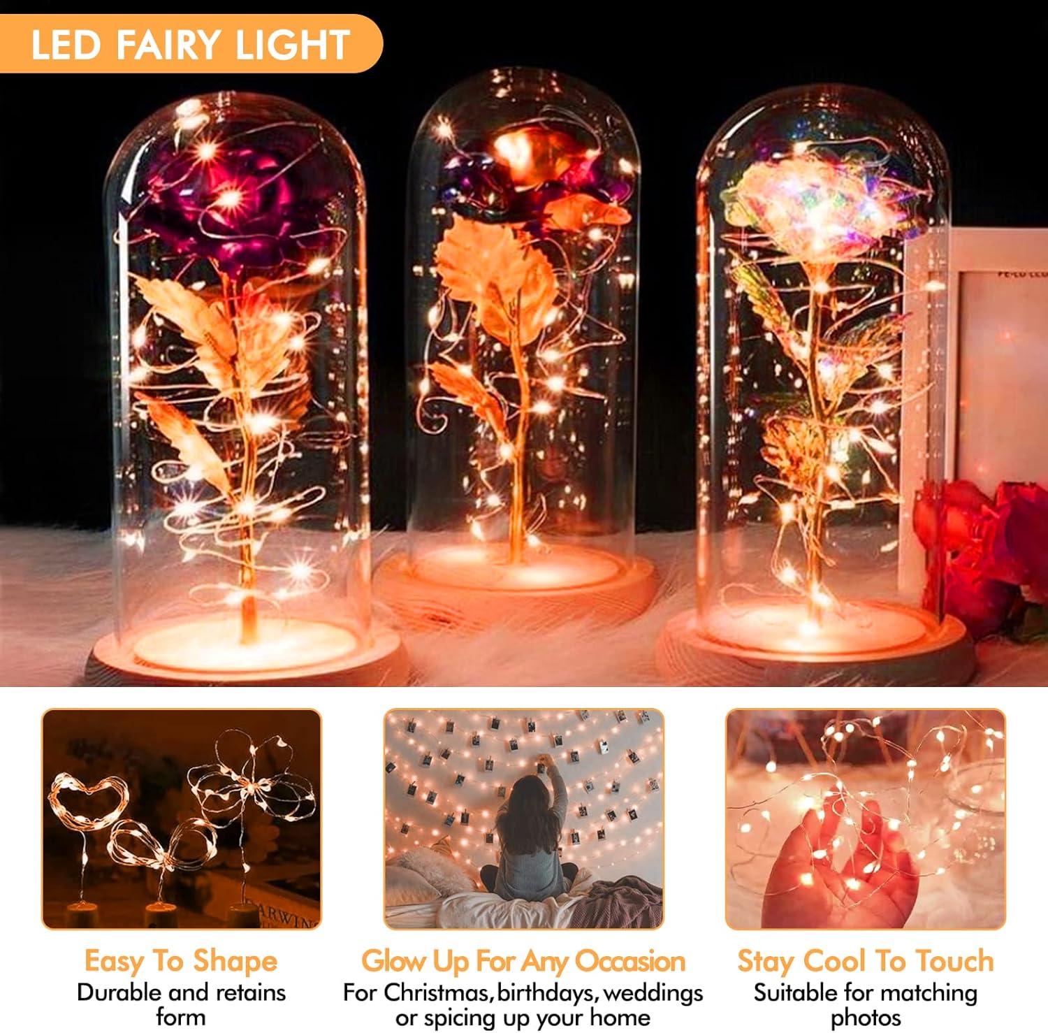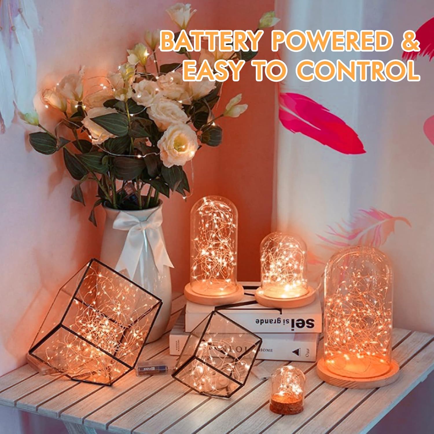 • ✨【Widely Used】The beautiful fairy light string helps to create a romantic atmosphere for anything, the bendable silver wire can be easily built into the shape you want. These starry lights are widely used, they can perfectly decorate weddings, parties, Halloween, Christmas, bedrooms, Valentine's Day, flowers, jars, vases, planting, and other crafts, etc. LED fairy lights string is small and mini, easy to carry and place anywhere you like
