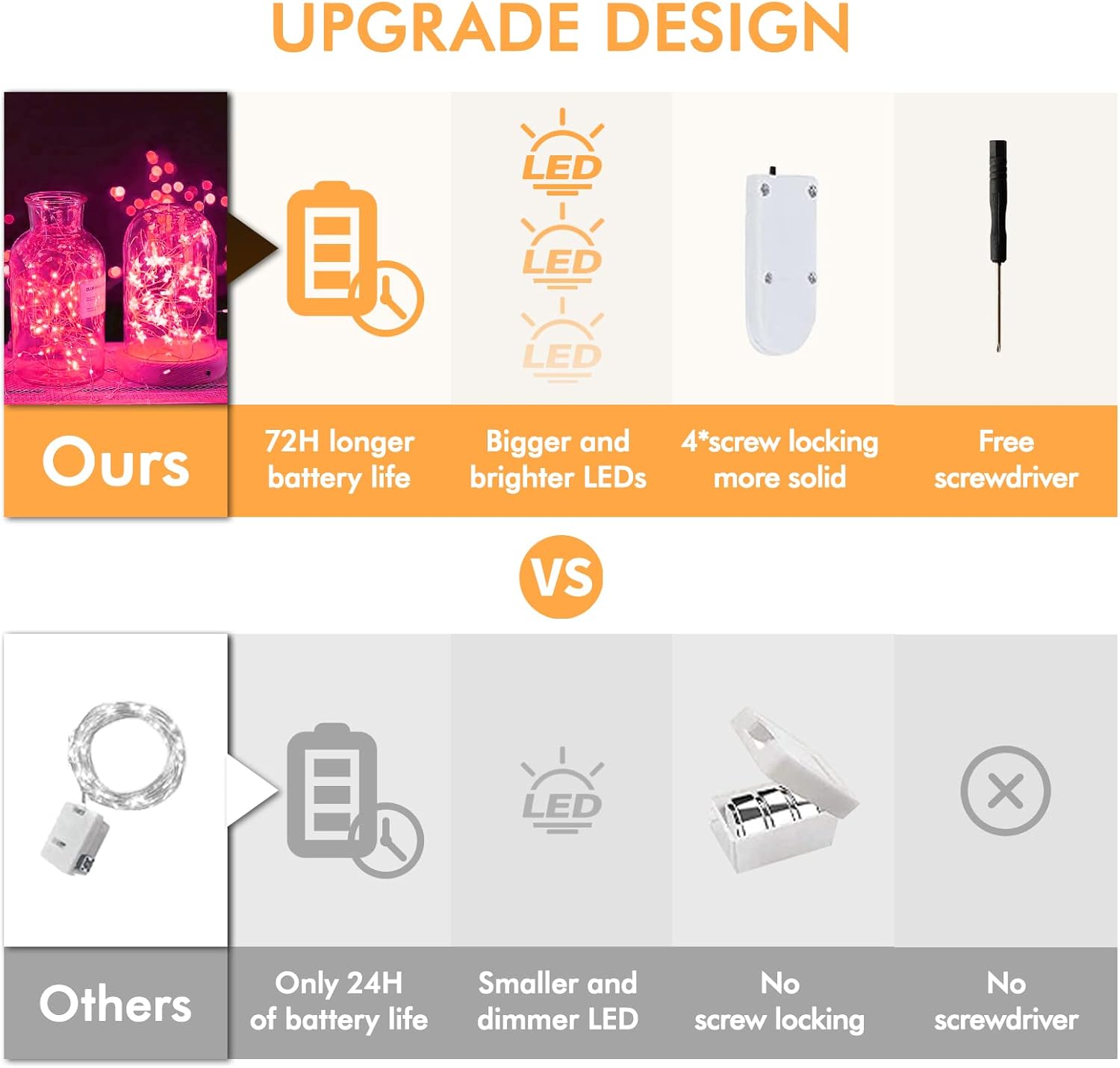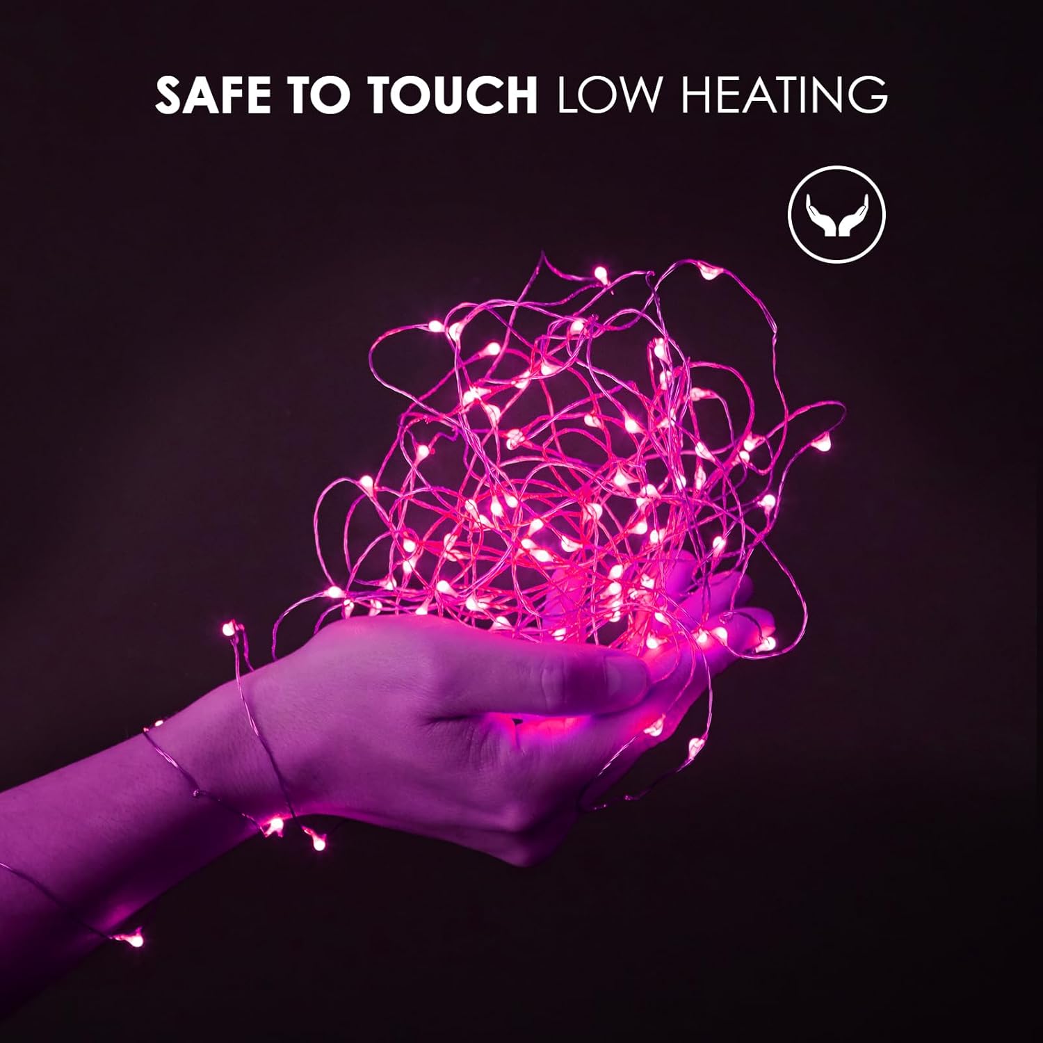 • ✨【12 Packs High-Quality Fairy Lights】 There are 12 packs of LED pink fairy lights inside each box, Each string of fairy string lights is equipped with 20 super bright mini LDE lamp beads, The light flashes 360 degrees without glare and soft light to protect your eyes. The fairy lamp wire is 7ft long and made of soft copper wire. It can be bent into any shape you like or wrapped around anything you want to decorate. These fairy lights can make everything that is decorated by them dazzling