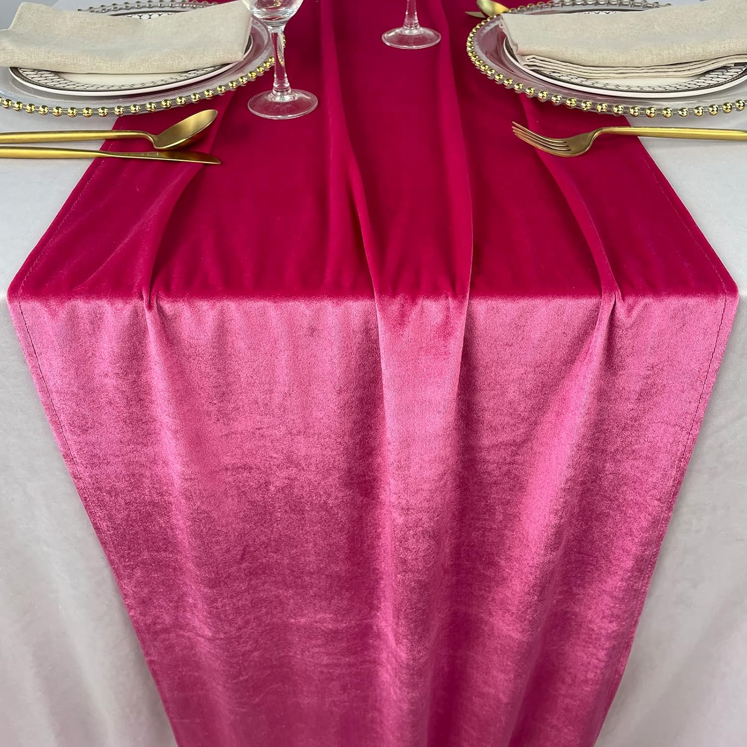 Velvet Table Runner, 10ft Luxurious Wedding Reception Decorations Soft Velvet Fabric Table Linen Overlay for Party (20 x 120 inch, Hot Pink)