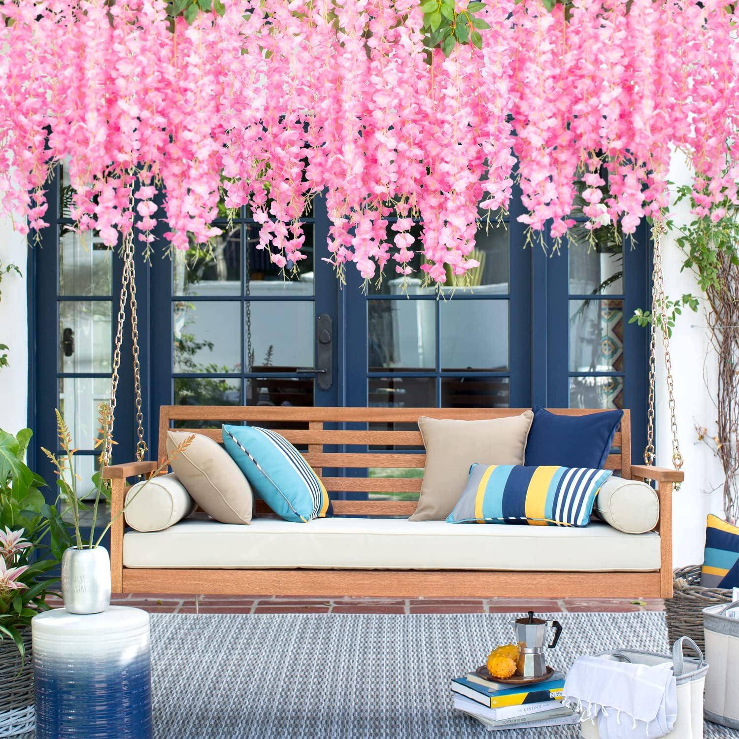 24 Pack Artificial Fake Wisteria Vine Ratta (3.75 Feet) Hanging Garland Silk Flowers String Home Party Wedding Decor(Pink)