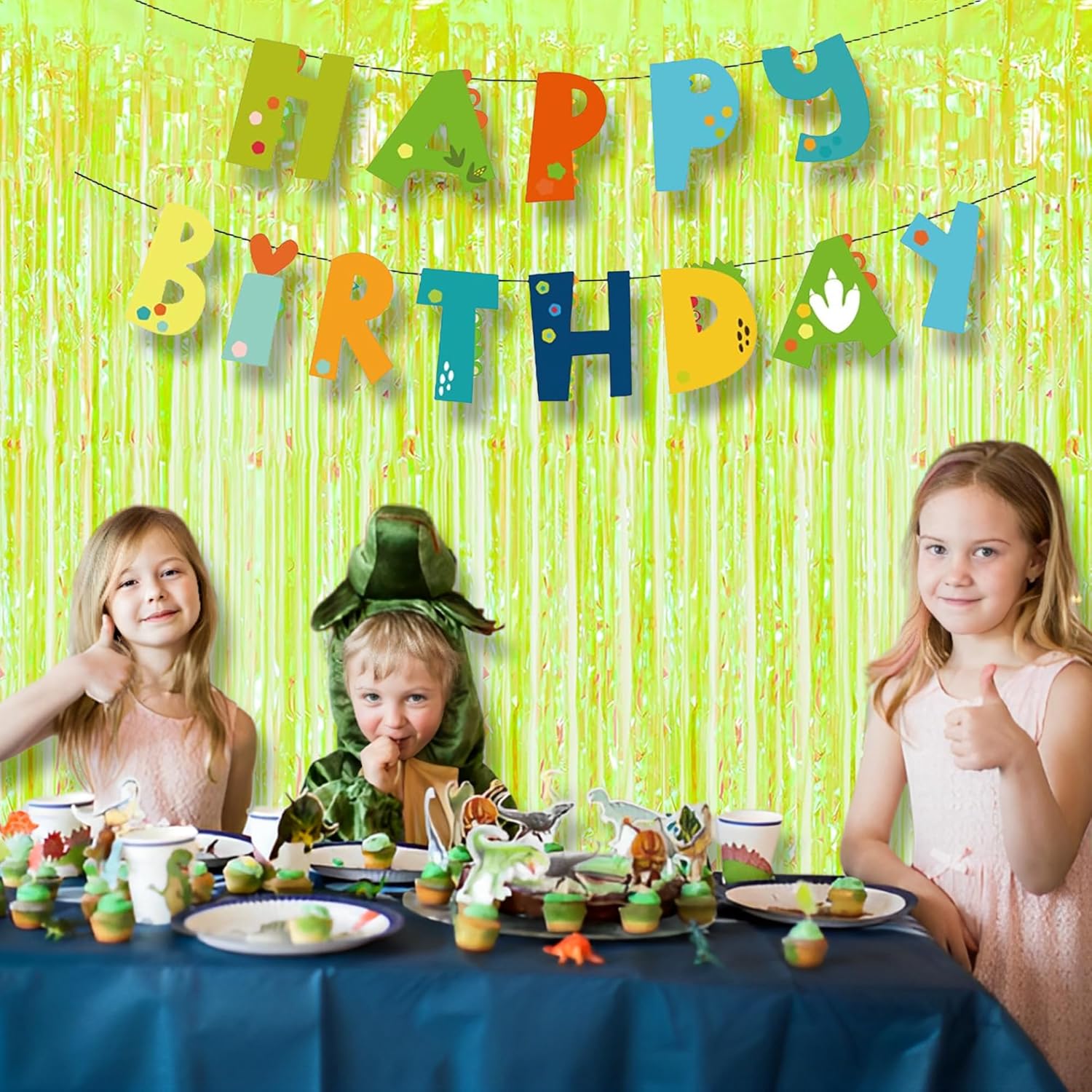 BRAVESHINE Iridescent Foil Fringe Backdrop - 2 Pack 3.2 x 6.5 ft Holographic Tinsel Curtain Party Streamers Photo Backdrop for Birthdays Dinosaur Theme Christmas Patricks Decorations - Clear Green