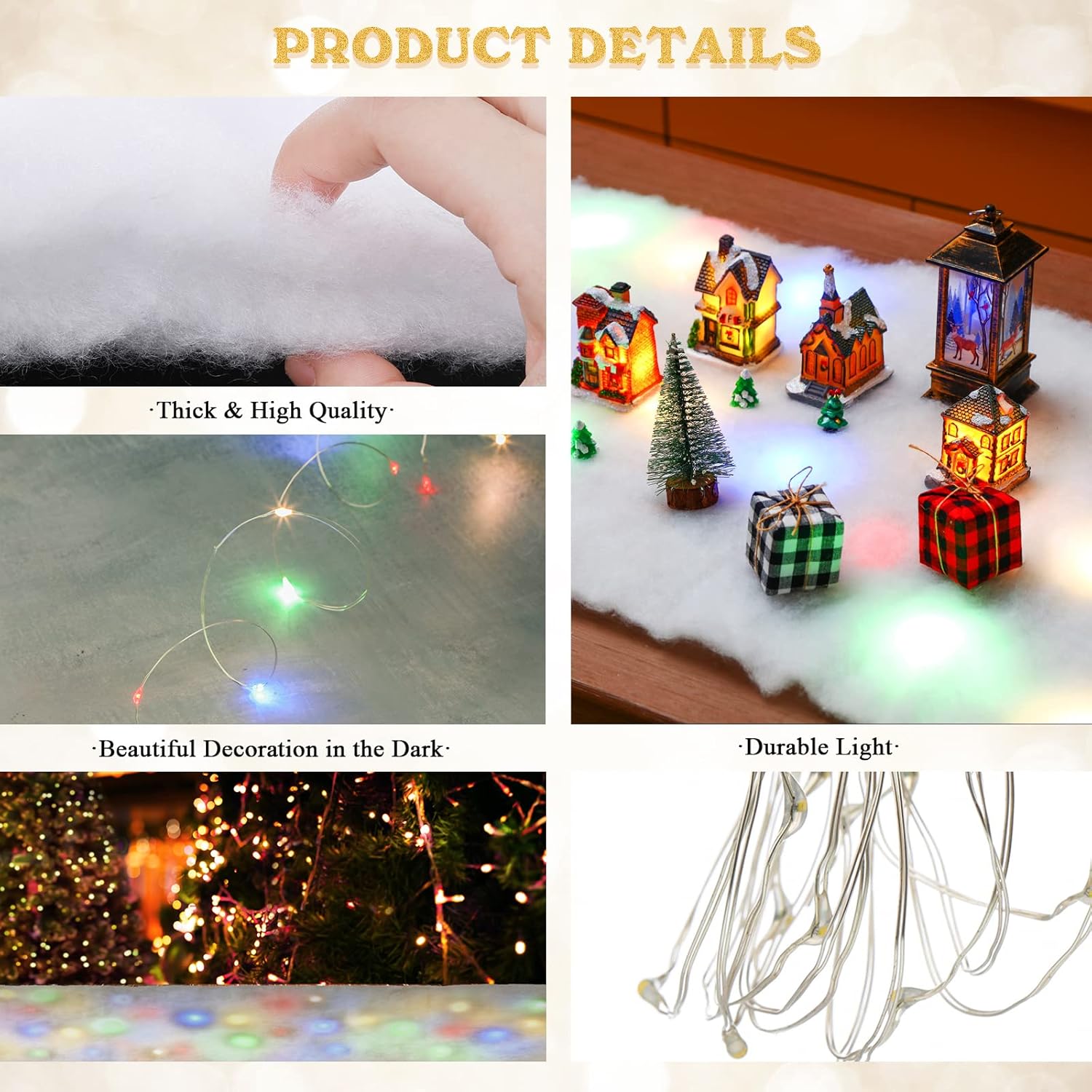 • Snow Blanket with LED Lights: you will get 1 Christmas snow blanket for christmas village and 2 colorful LED light string; These snow blanket decorations are very suitable for creating fake snow scenes and setting off the atmosphere of Winter Christmas snow; LED lights can create a warm feeling; The combination of snow blanket and LED will make your Christmas decoration attractive