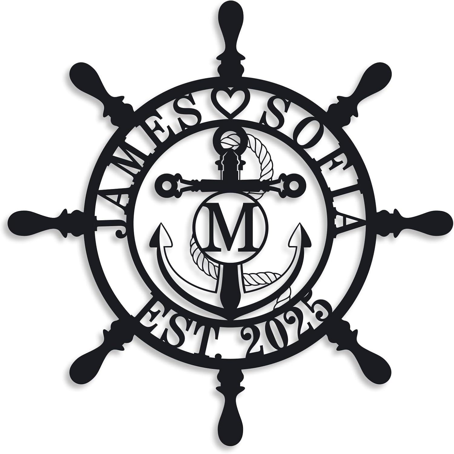 Personalized Ship Wheel Metal Sign, Customized Nautical Wall Decor, Anchor Compass Metal Sign, Family Name Sign, Monogram Wall Decor, Last Name Signs for Home, Housewarming Gift