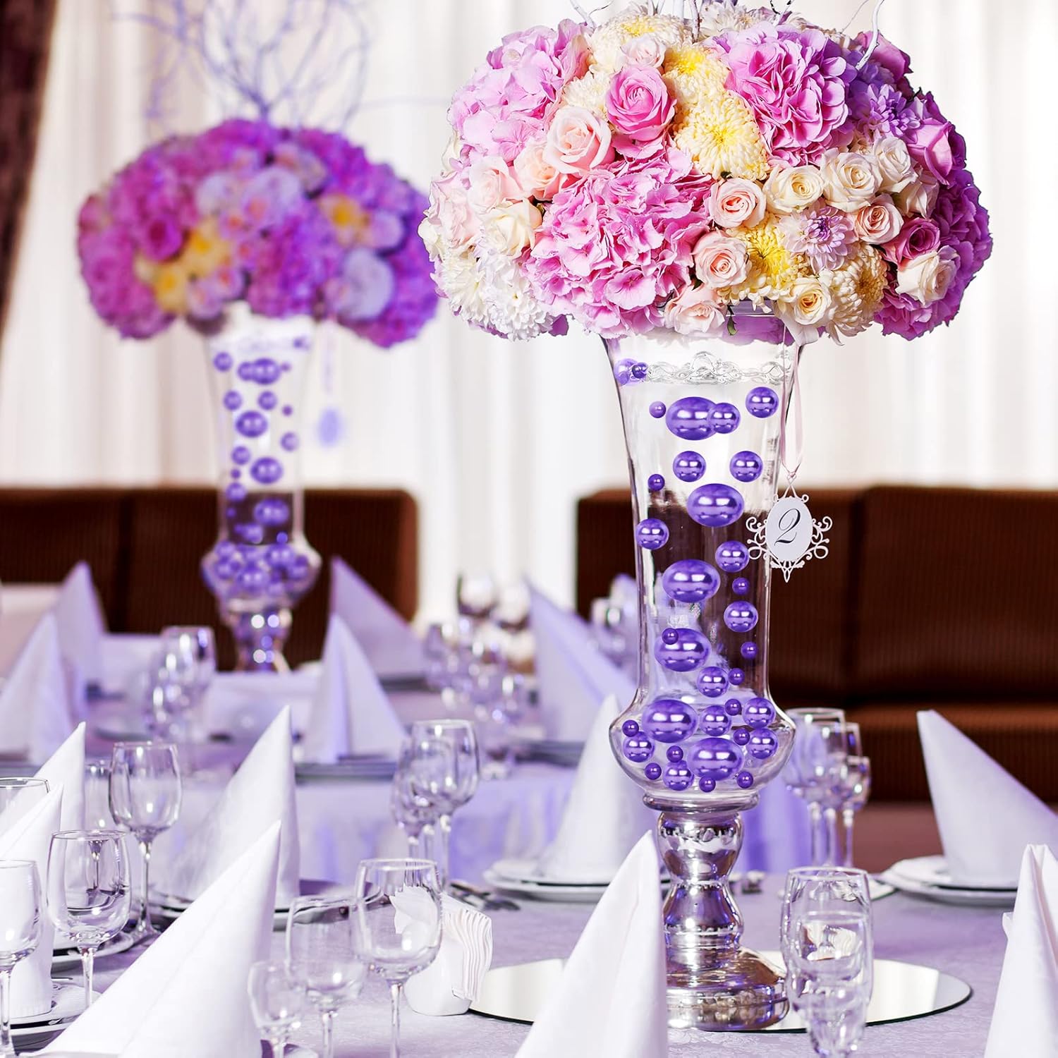 150 Pieces Vase Filler Faux Pearls Vase Makeup Beads No Hole Gloss Bead Mixed Sizes Round Pearl for Home Party Wedding Decor, 8/14/20 mm(Purple)