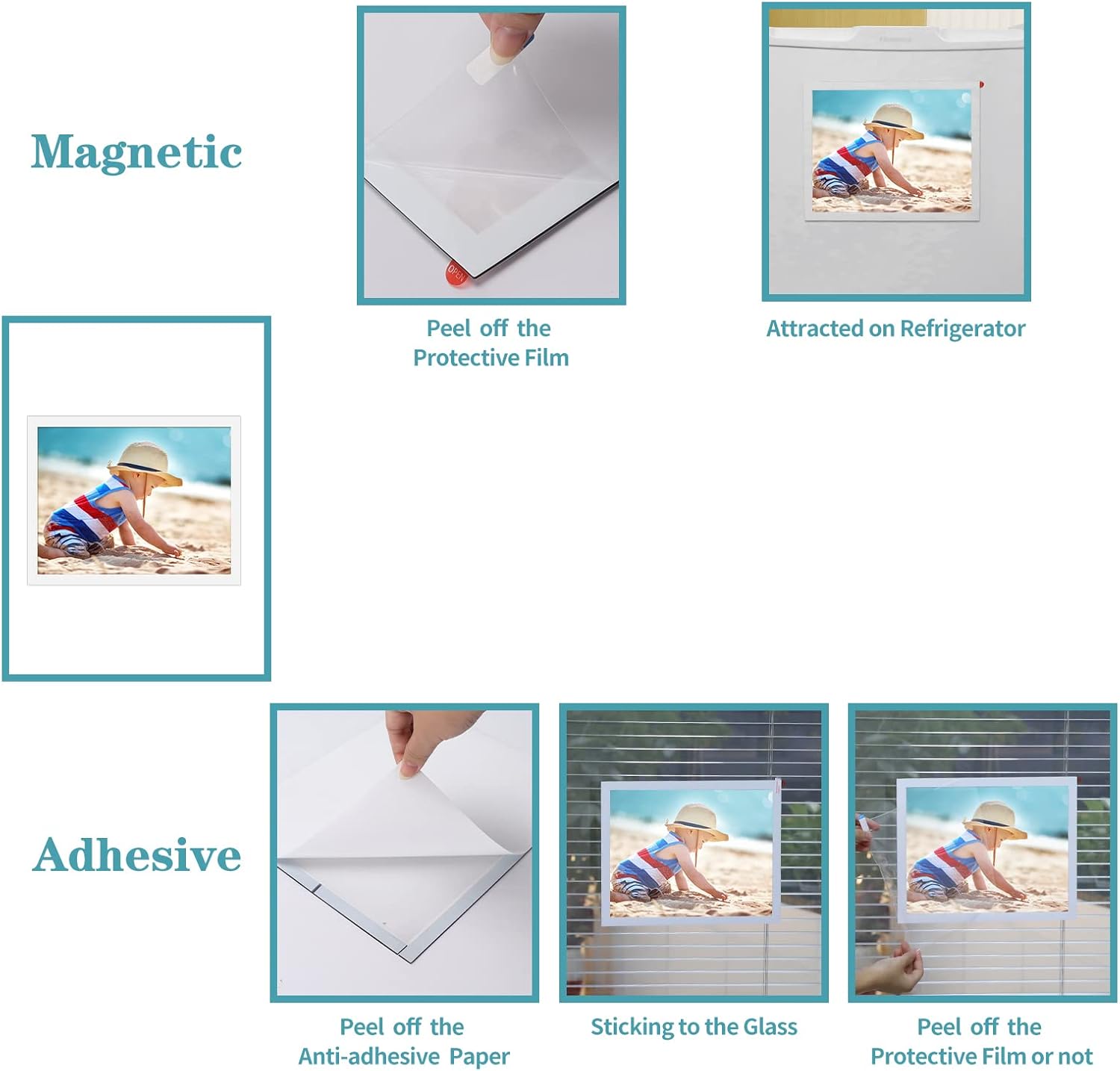 • White frames highlight your pictures, brighten your home, showcase your memories vividly. 12 packs of magnetic peel and stick frames meet your home decor and business needs at one time.