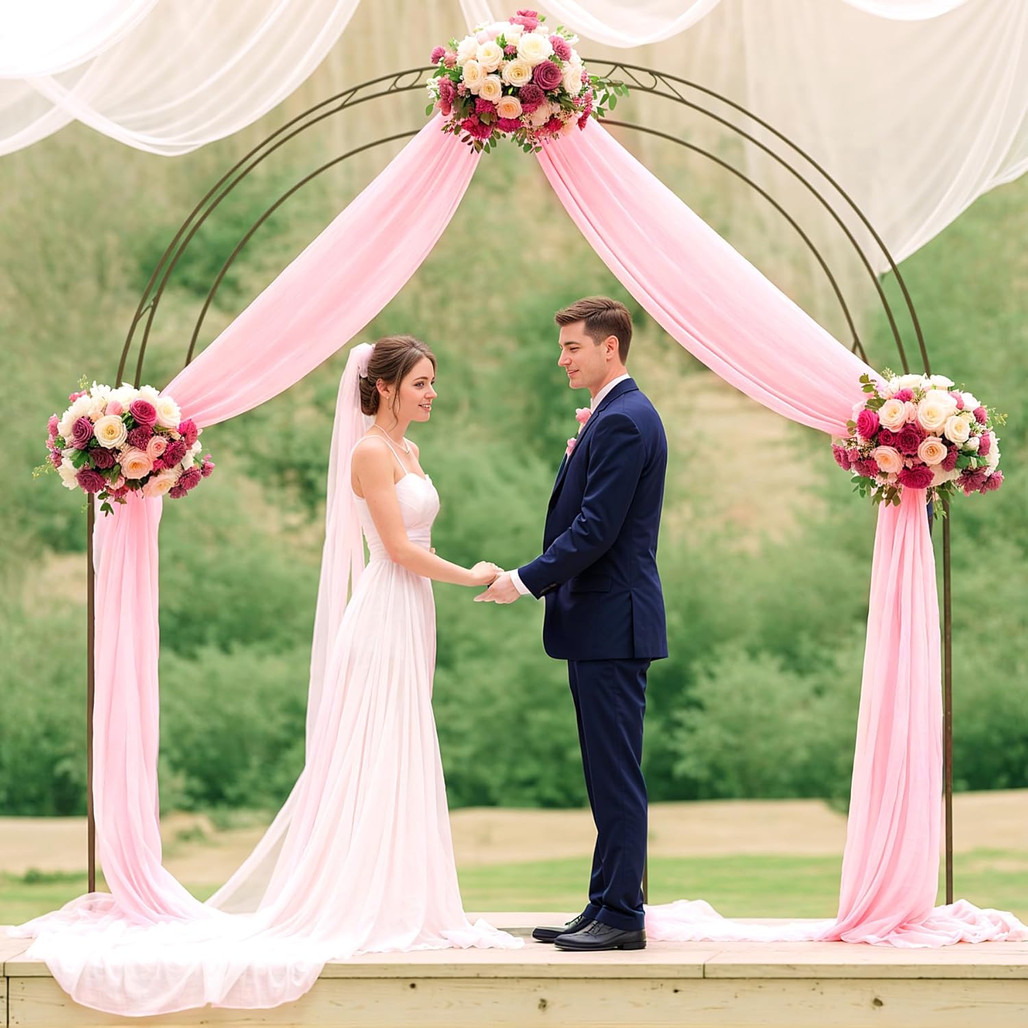 • Elegant Blush Wedding Arch Draping Fabric: Transform any arch into a romantic backdrop with beautiful Blush sheer fabric that resists wrinkles, creating delicate curves or flowing folds.