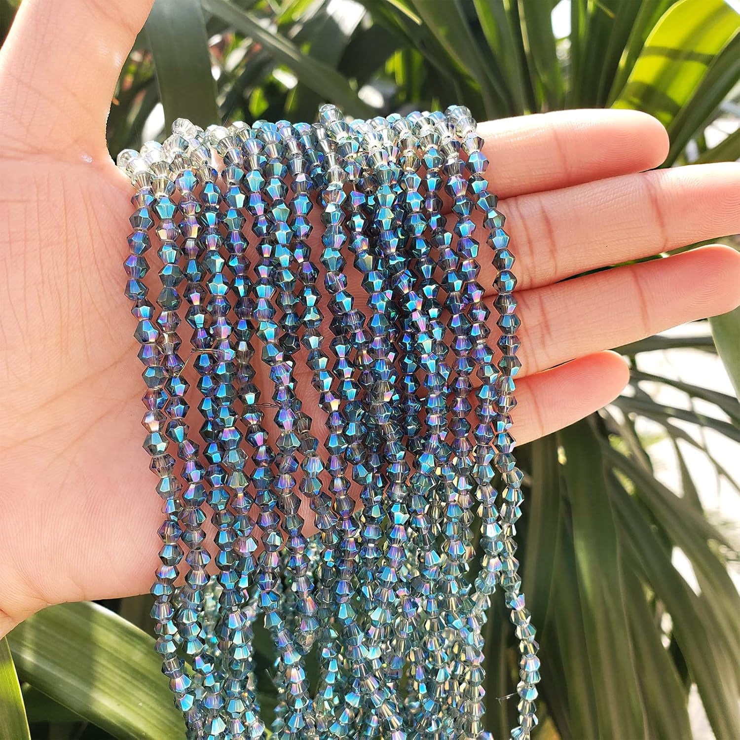 • 【QUALITY MATERIAL】Made of high quality crystal glass (synthetic quartz),odorless and non-toxic. Crystal with multi-faceted Bicone shape design will refract light,multi-faceted cutting, not easy to break or deform, durable, different light will show different colors and add a gorgeous glow to your jewelry or crafts. The actual color effect of the bicone beads is very good, rich, uniform and bright, better than the picture, worth trying.