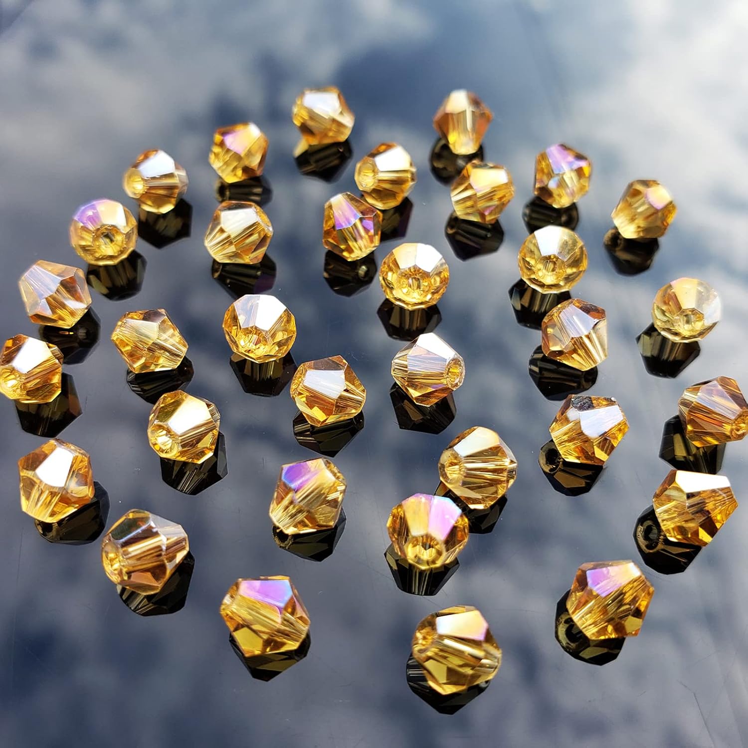 • 【QUALITY MATERIAL】Made of high quality crystal glass (synthetic quartz),odorless and non-toxic. Crystal with multi-faceted Bicone shape design will refract light,multi-faceted cutting, not easy to break or deform, durable, different light will show different colors and add a gorgeous glow to your jewelry or crafts. The actual color effect of the bicone beads is very good, rich, uniform and bright, better than the picture, worth trying.