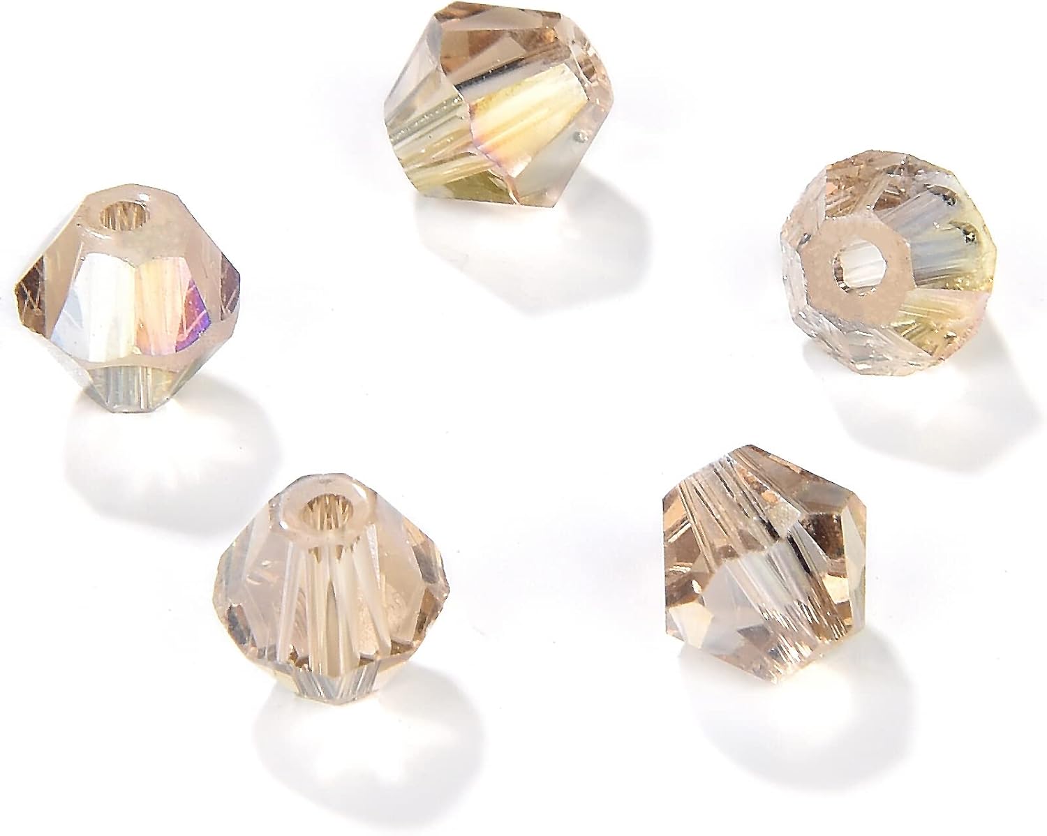 • 【QUALITY MATERIAL】Made of high quality crystal glass (synthetic quartz),odorless and non-toxic. Crystal with multi-faceted Bicone shape design will refract light,multi-faceted cutting, not easy to break or deform, durable, different light will show different colors and add a gorgeous glow to your jewelry or crafts. The actual color effect of the bicone beads is very good, rich, uniform and bright, better than the picture, worth trying.