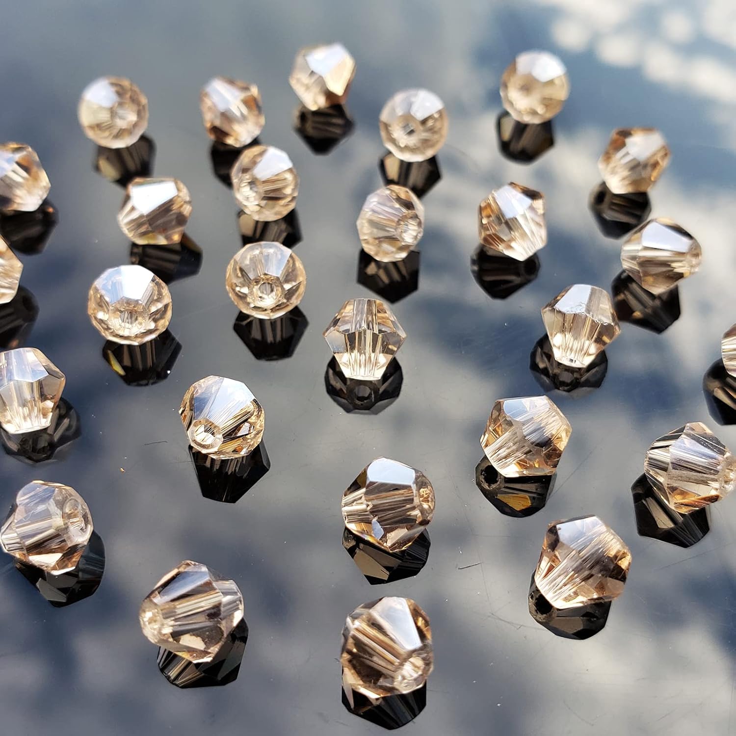 6mm Bicone 450Pcs Silver Champagne AB Crystal Glass Beads Faceted Bicone Shape Crystal Glass Spacer Beads for Bracelet Necklace Decorative Hand Jewelry Making (Silver Champagne AB, 6MM)