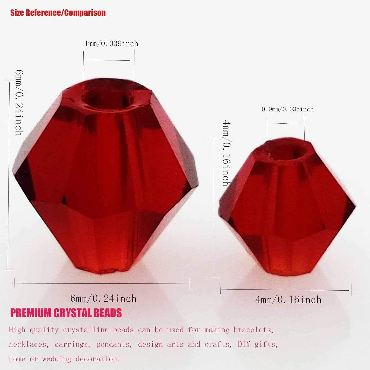 • 【PACKAGING and SIZE】 Package includes 450Pcs 6mm Bicone faceted crystal glass beads in red color. Bead size: 6mm (or ~ 0.24 inch); Hole diameter ~ 1mm ( ~ 0.039 inch).In addition, we provide you with some stretchy cord and add an organza bag.Let your family and friends enjoy DIY happy time together.Kindly note: Please make sure this bead size meets your needs before placing an order,thank you.