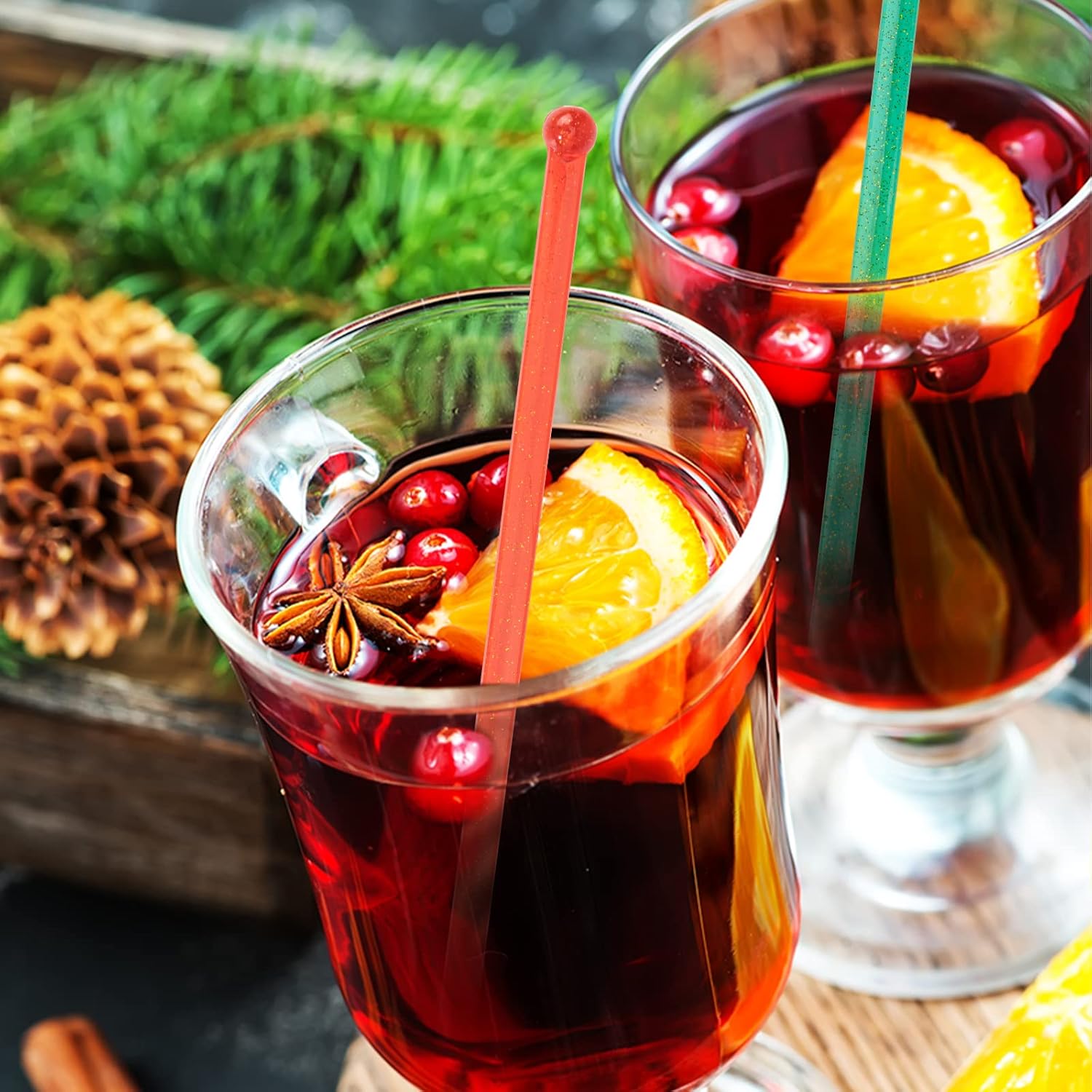 100-PCS Christmas Green and Red Glitter Plastic Swizzle Sticks, Crystal Cake Pops, Cocktail Coffee Drink Stirrers, Stir Sticks, 7.24 Inch