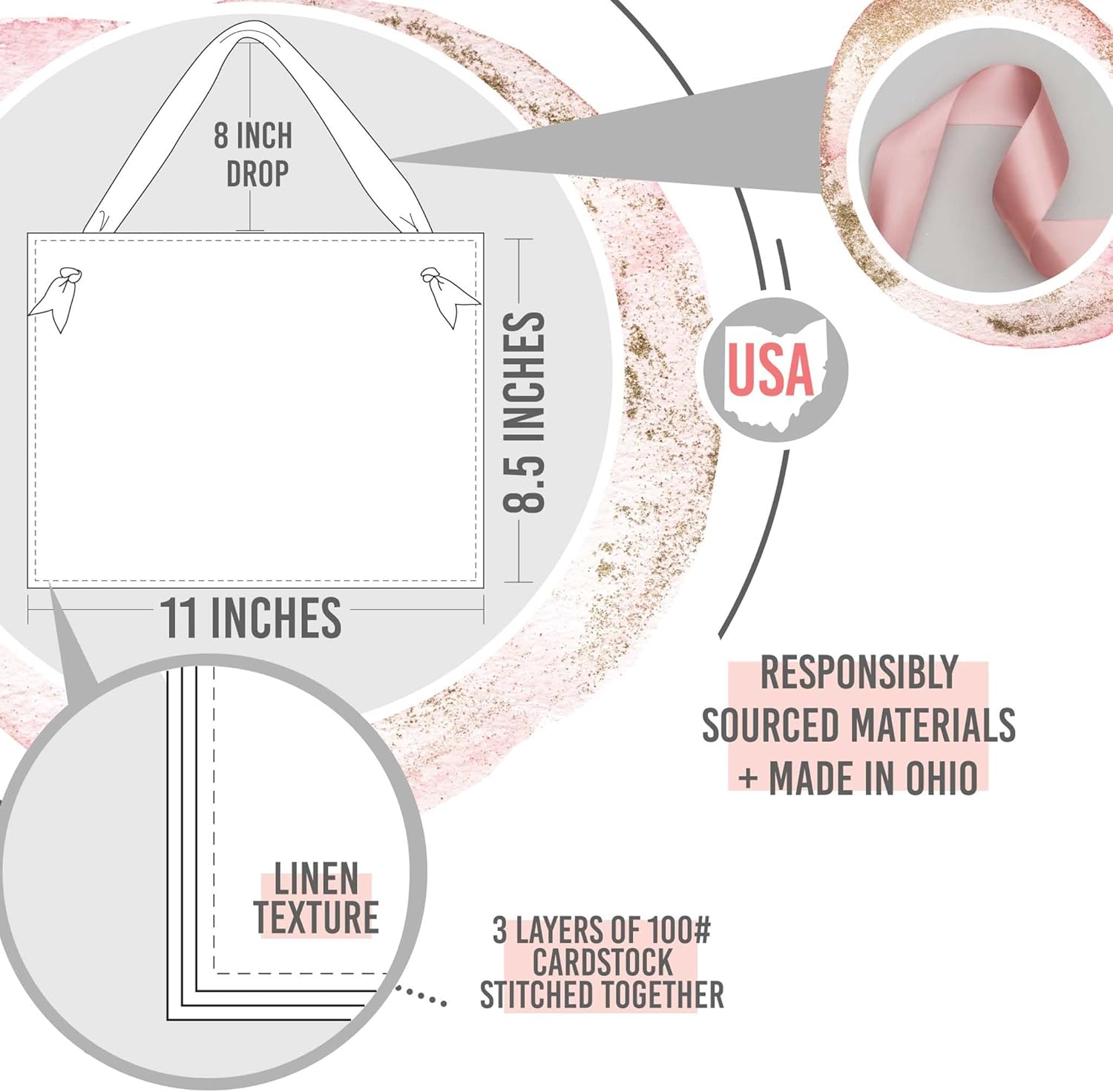 • Linen Cardstock with Stitching: each sign is meticulously crafted from three layers of cardstock, stitched together to exude elegance and perfectly complement the linen texture - 11x8.5 inches