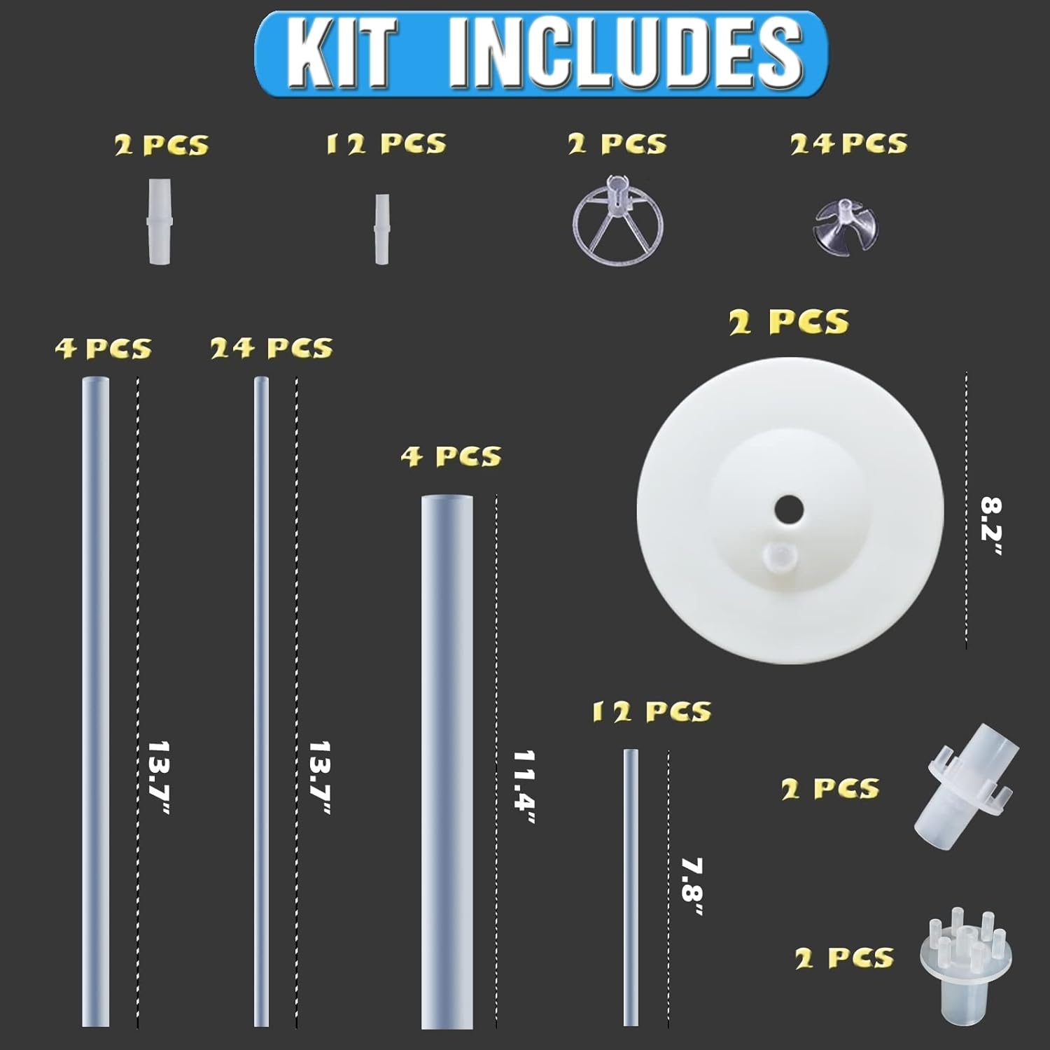 • ☺BALLOONS ARCH KIT INCLUDES - 2 sets of balloon stand kits, includes 44 unconnected balloon sticks, 24 cups, 2 big cups, 4 of which are tube connectors, 12 mini union joints,2 union joints,28pcs balloons,2 base.Each balloon stand comes in 2 different height sizes can useful.Perfect Size for Table&Ground.