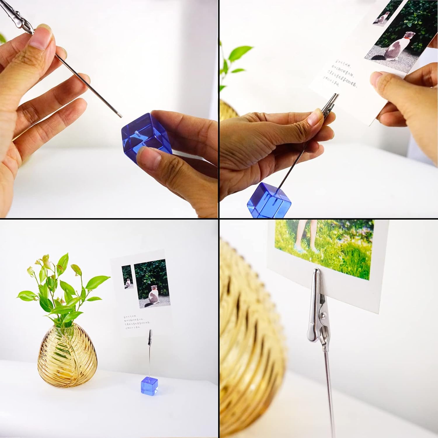 • ★Unique Decor: The photo clip holders comes with 10 rainbow-colors colors cube bases. The high clear bases will create the most beautiful refraction when the sunlight or any other kind of lights hits them