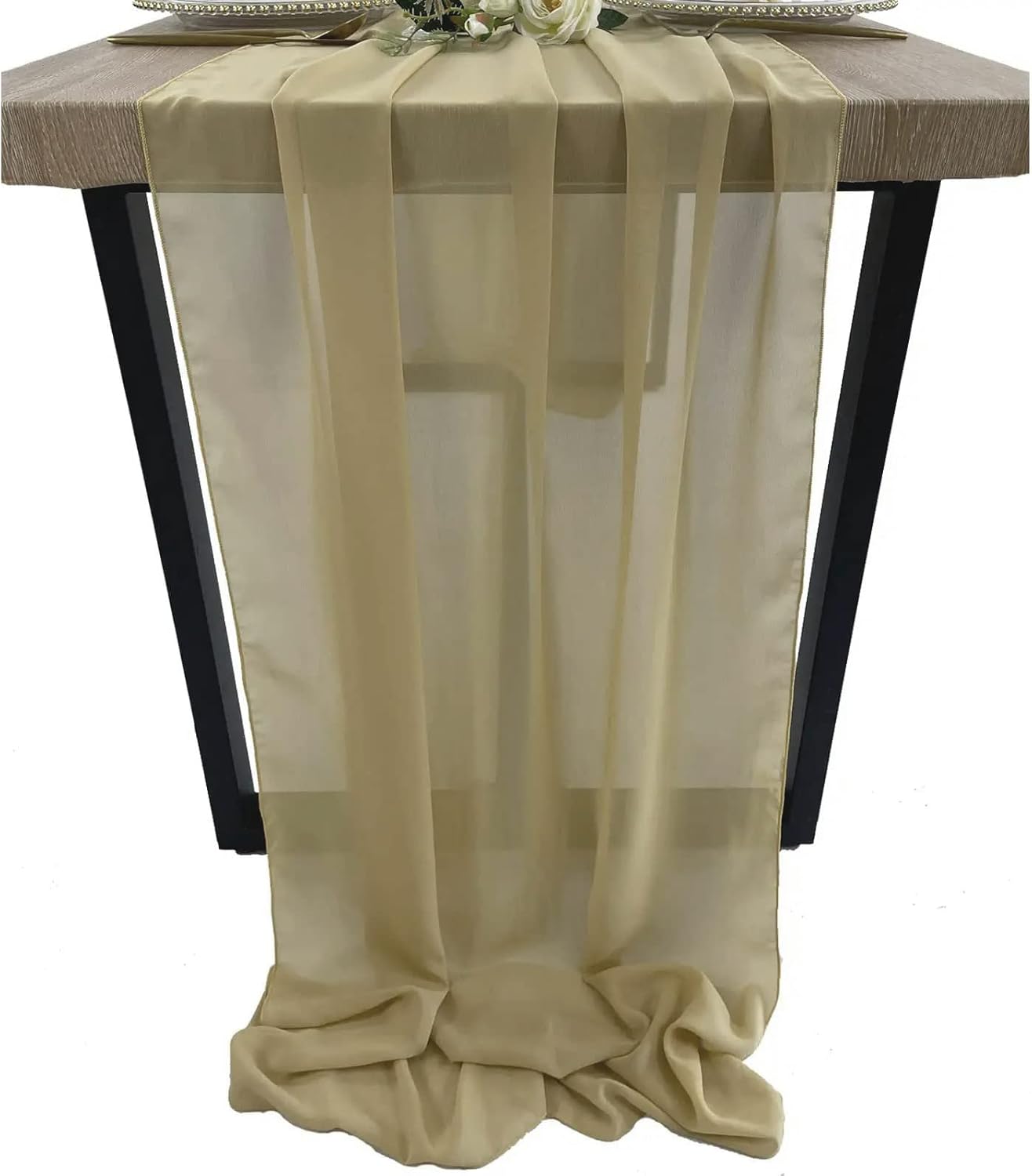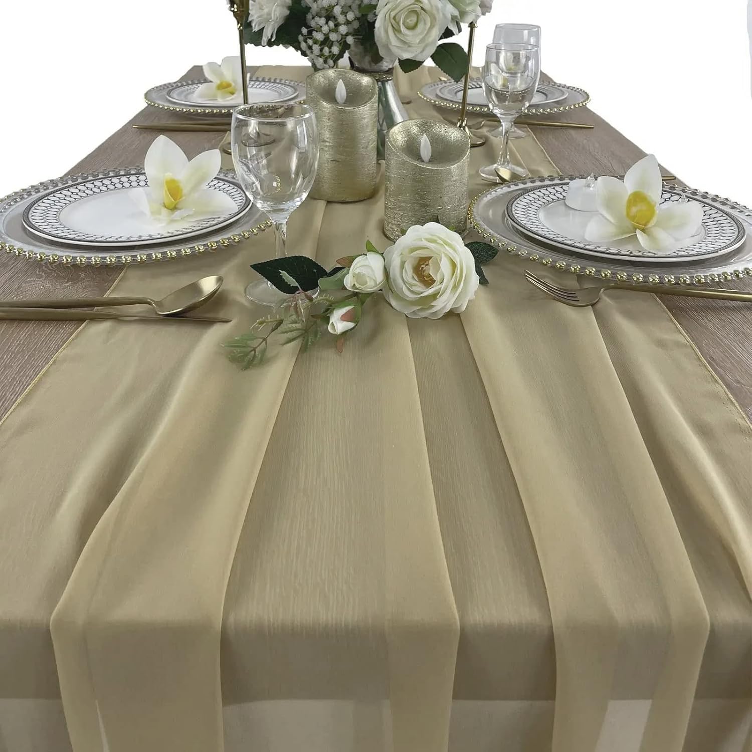 EHLDekol 10 Packs Chiffon Table Runners 27 x 120 inches Romantic Sheer Wedding Table Runner Top Table Bridal Party Decoration
