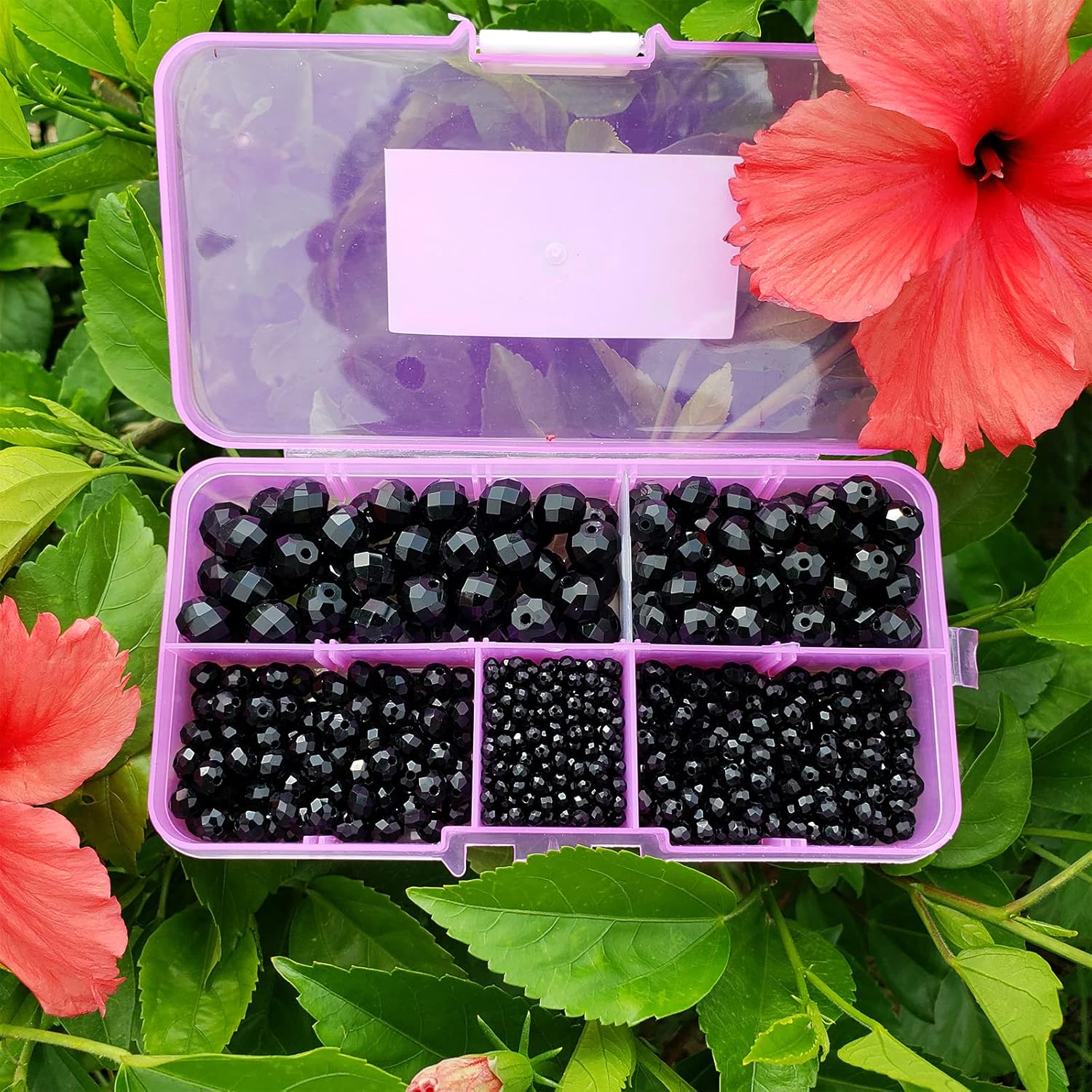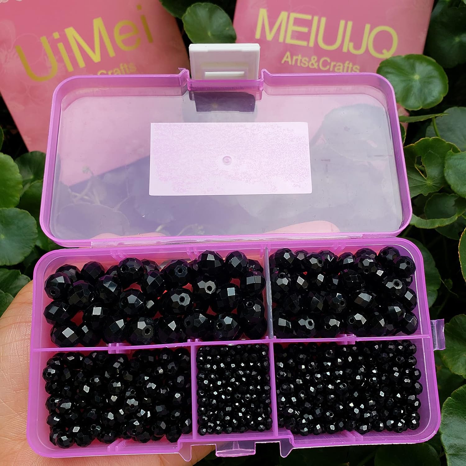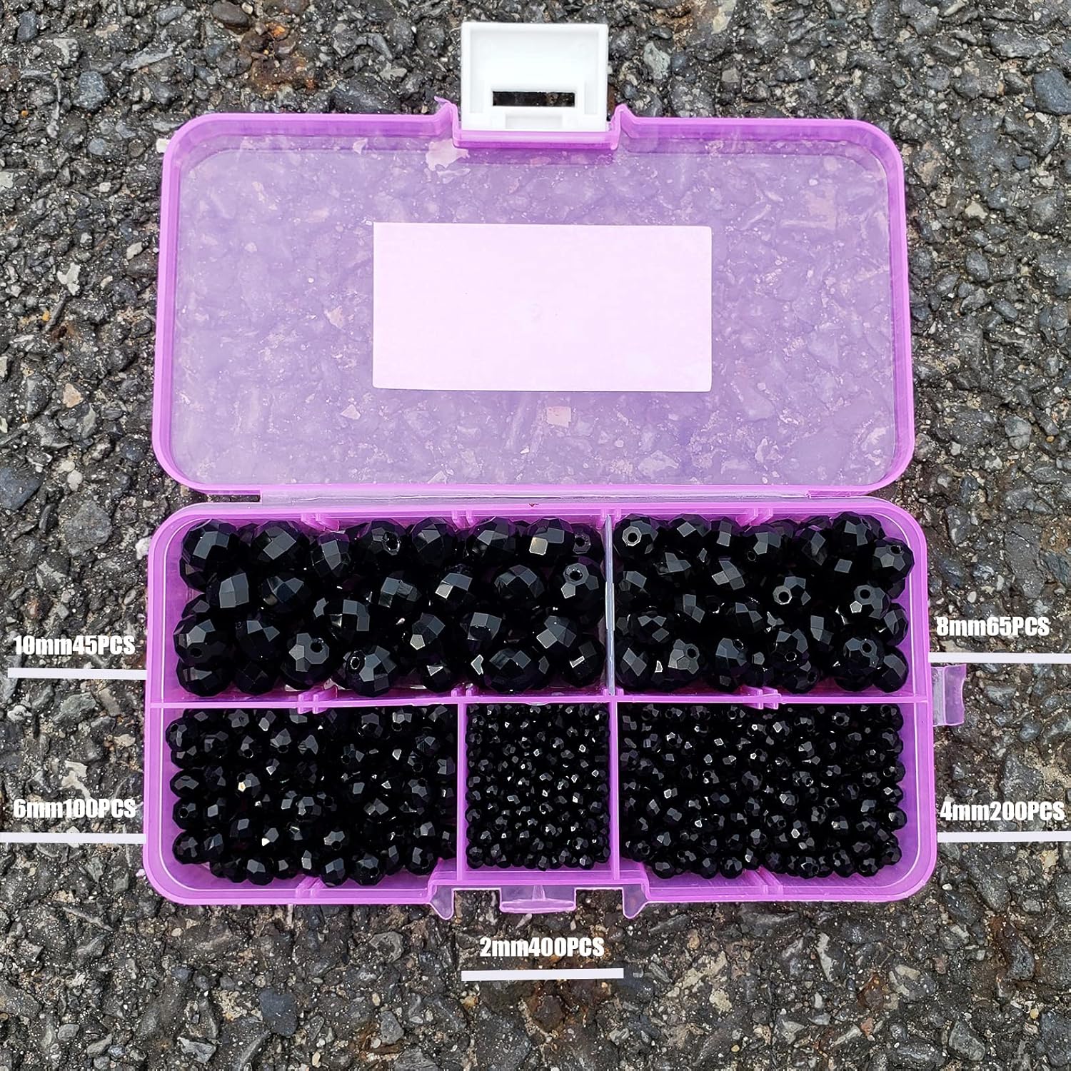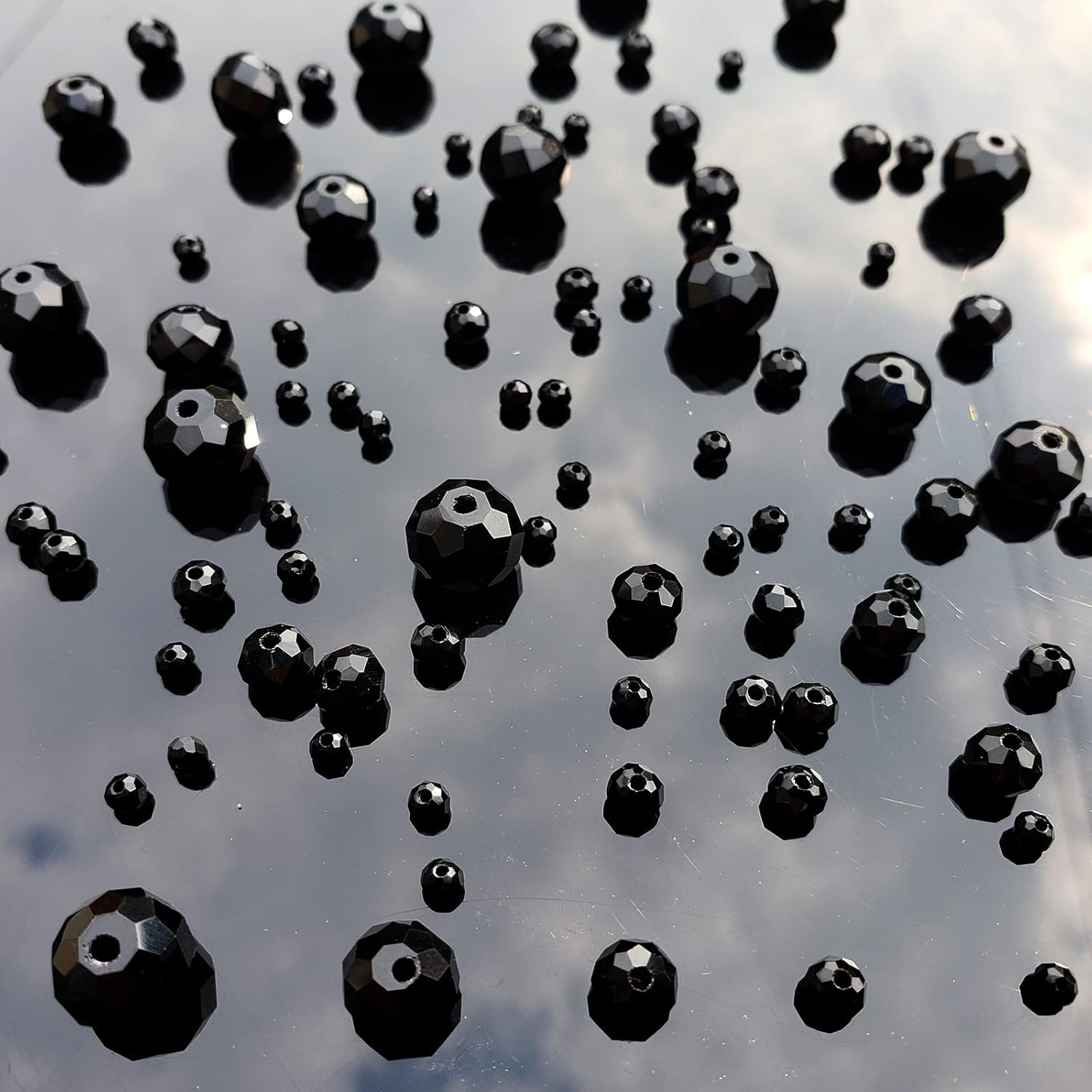 • 【PACKAGING and SIZE】Package includes 810Pcs black rondelle crystal glass beads in 5 different sizes ,400pcs 2mm,200pcs 4mm,100pcs 6mm,65pcs 8mm and 45pcs 10mm faceted rondelle crystal glass beads.Sufficient quantity and various sizes to meet your various needs, you can combine them together to create delicate handicrafts according to your own preference.In addition, we provide you with some stretchy cord and add an organza bag.Let your family and friends enjoy DIY happy time together.