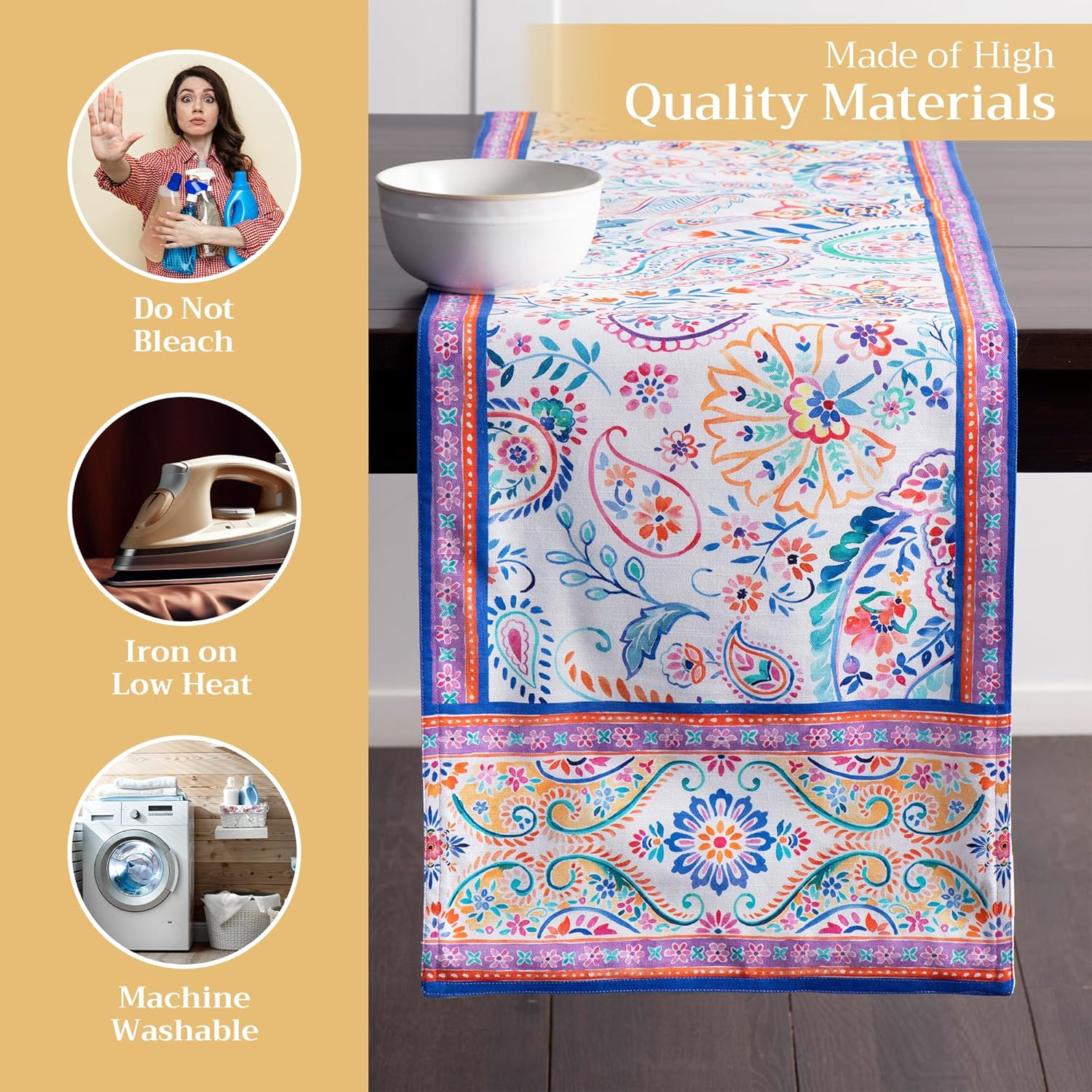 • Easy care & maintenance: Crafted from 100% cotton, this table runner is machine washable with like colors, do not bleach. Tumble dry on low and warm iron if needed. Durable and easy to maintain for everyday or seasonal use.