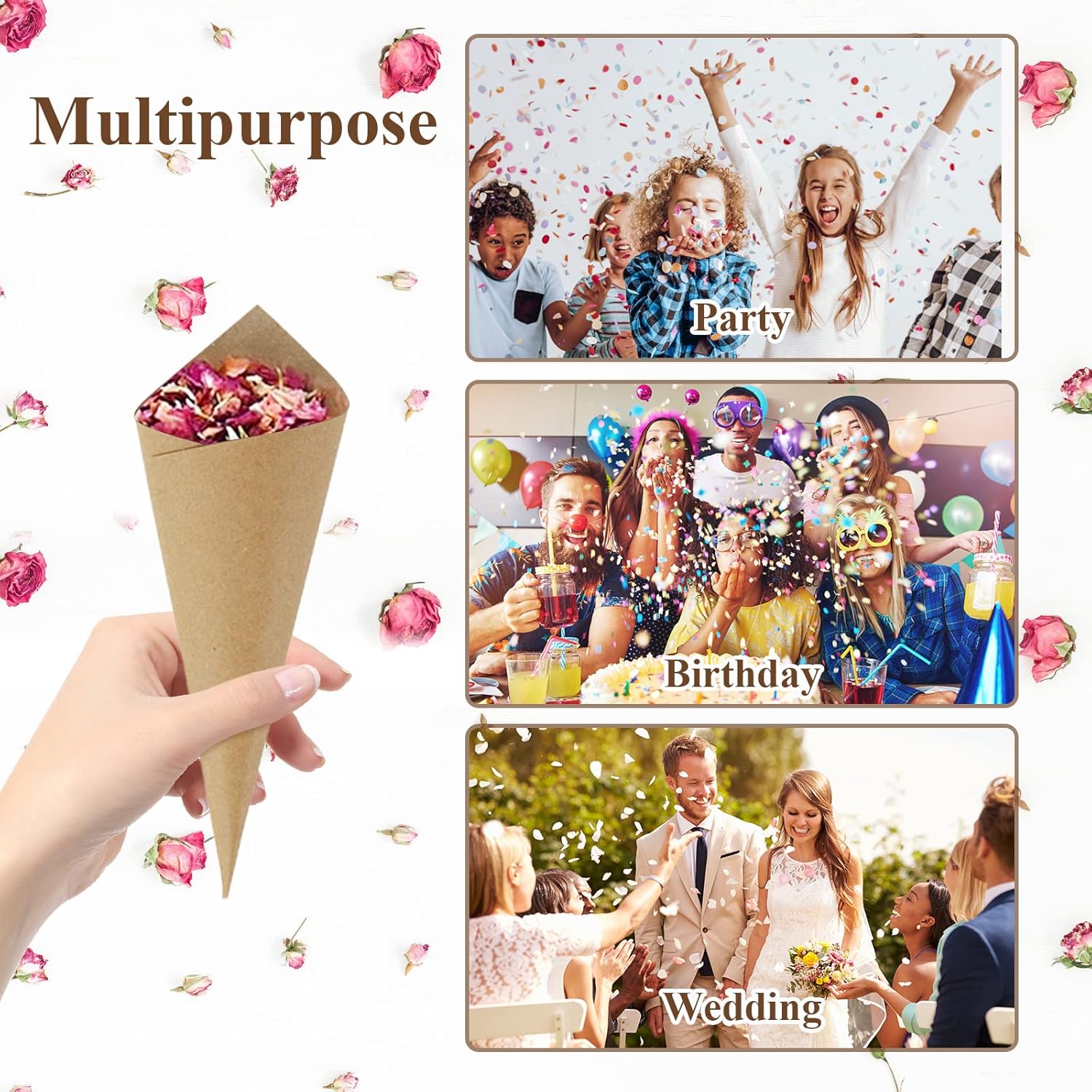 • 【Wide Application】Confetti cones and stand tray paper cone box is very suitable for filling dry petals, confetti, etc. It is suitable for engagement, party, birthday, marriage and other activities, making your life more ceremonial and colorful.