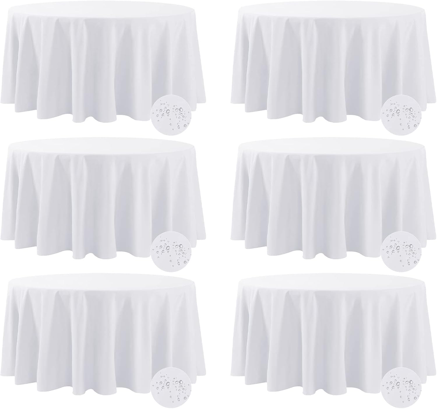 Fokitut 6 Pack Waterproof Round Tablecloth, 108 Inch, Stain Resistant and Wrinkle Polyester Table Cloth, Fabric Table Cover for Kitchen Dining, Wedding, Party, Holiday Dinner-White