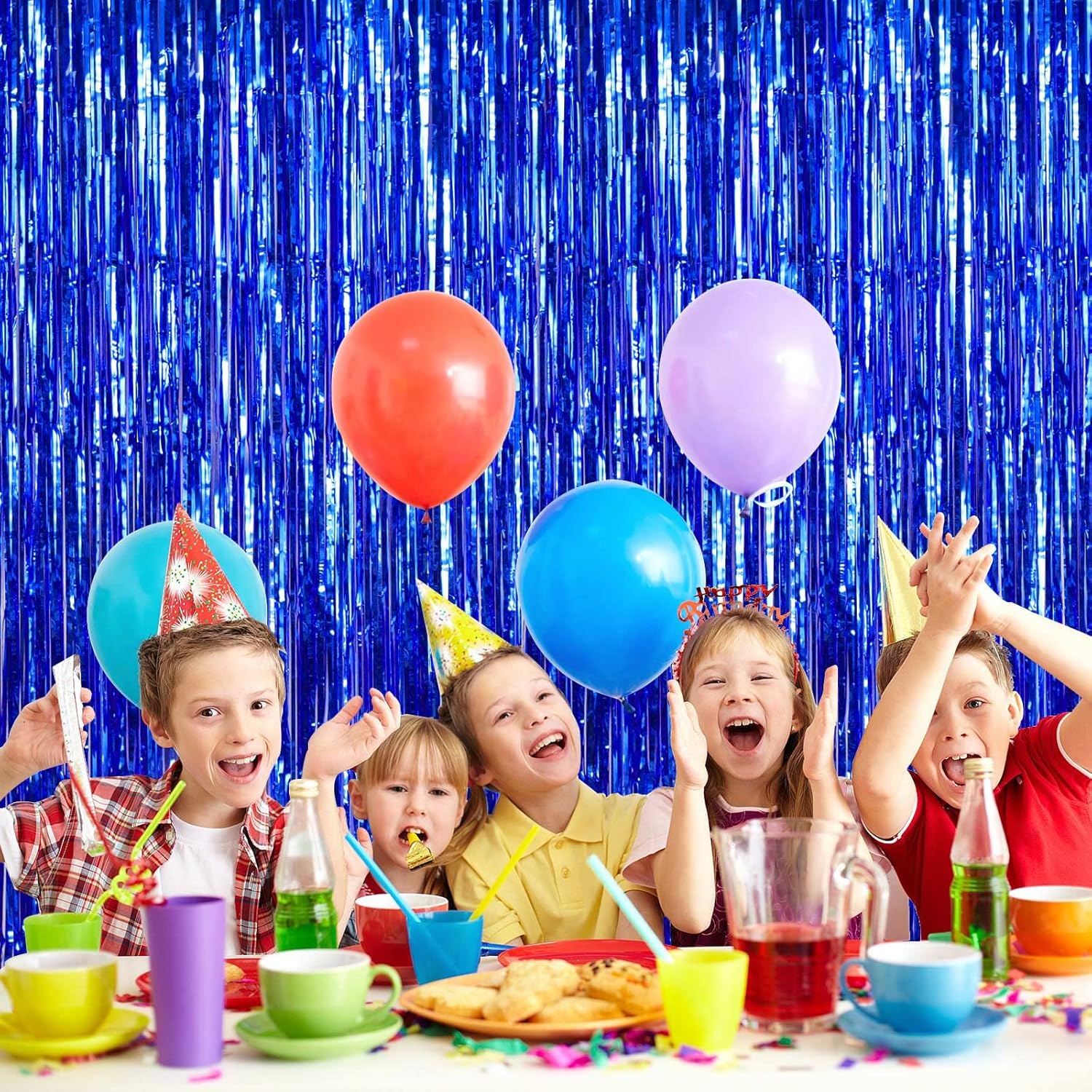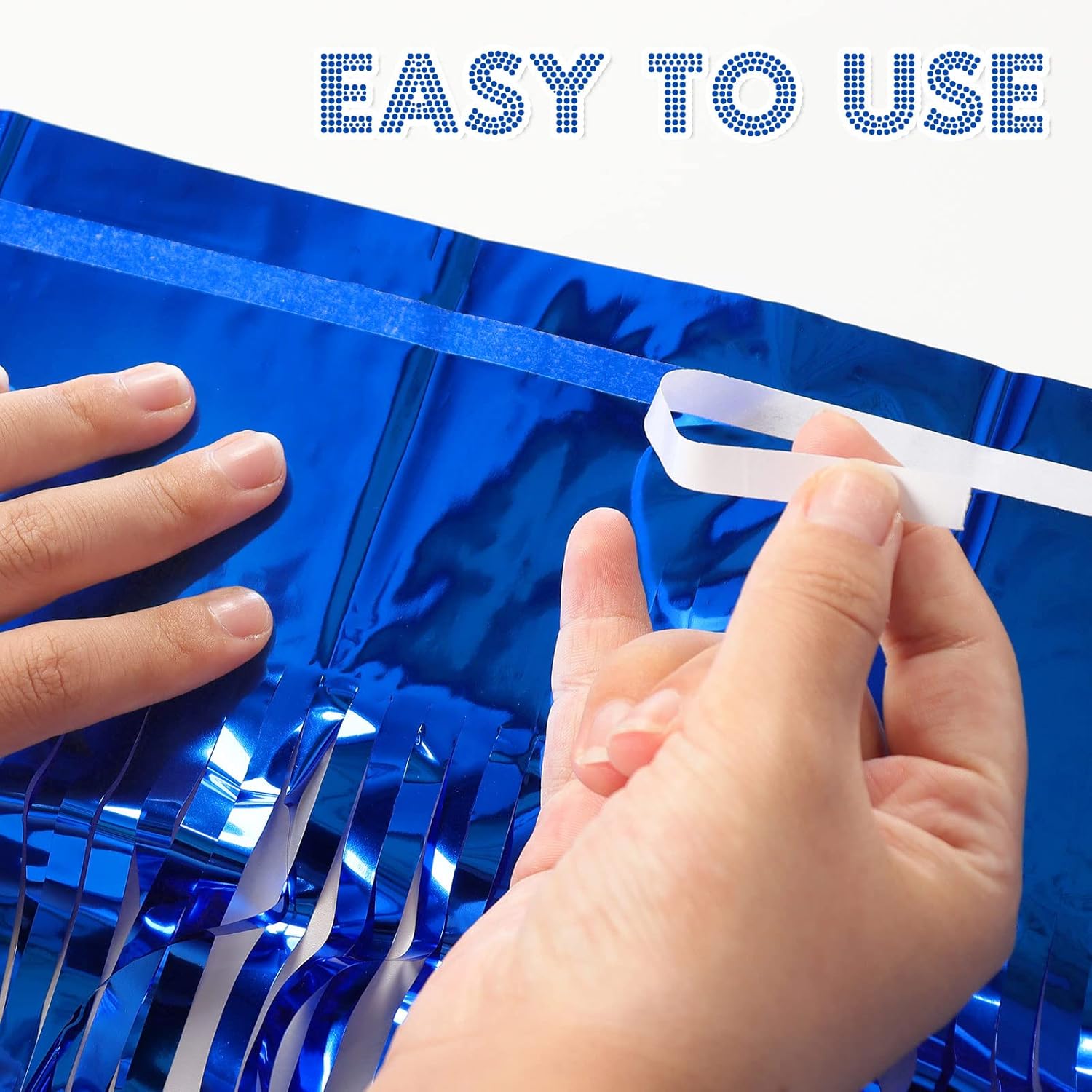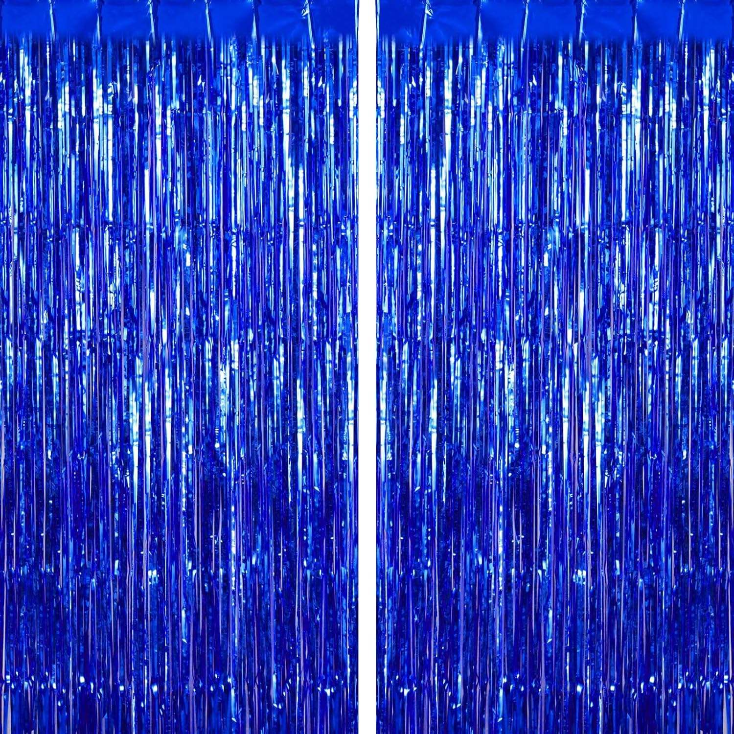 2 Pack Blue Fringe Curtains Foil Shiny Fringe Backdrop Tinsel Door Streamers Foil Curtains for Birthday Wedding Engagement Bridal Shower Celebration Party Decorations Large