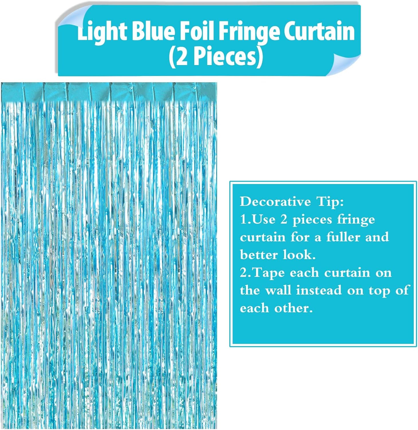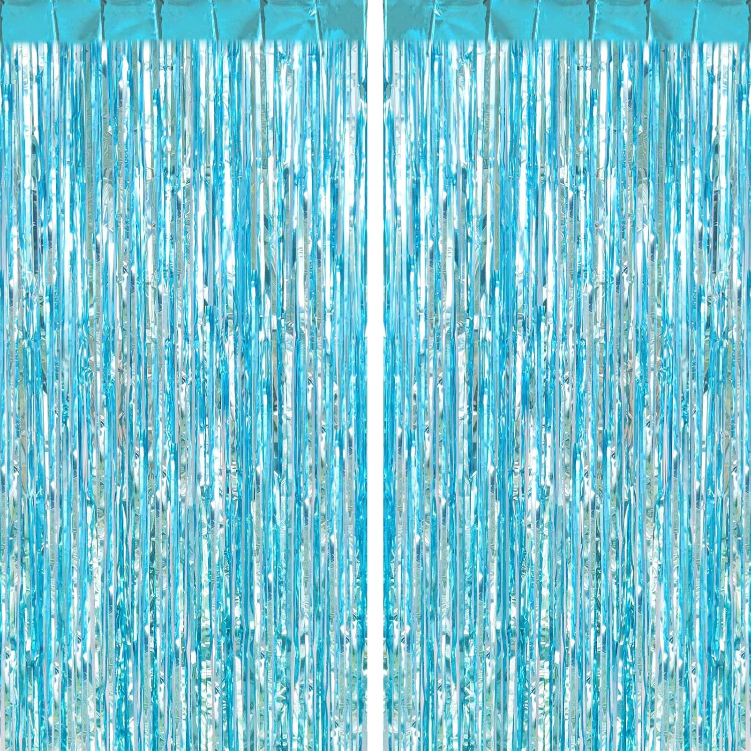 2 Pack Light Blue Fringe Curtains Foil Shiny Fringe Backdrop Tinsel Door Streamers Foil Curtains for Birthday Wedding Engagement Bridal Shower Celebration Party Decorations Large