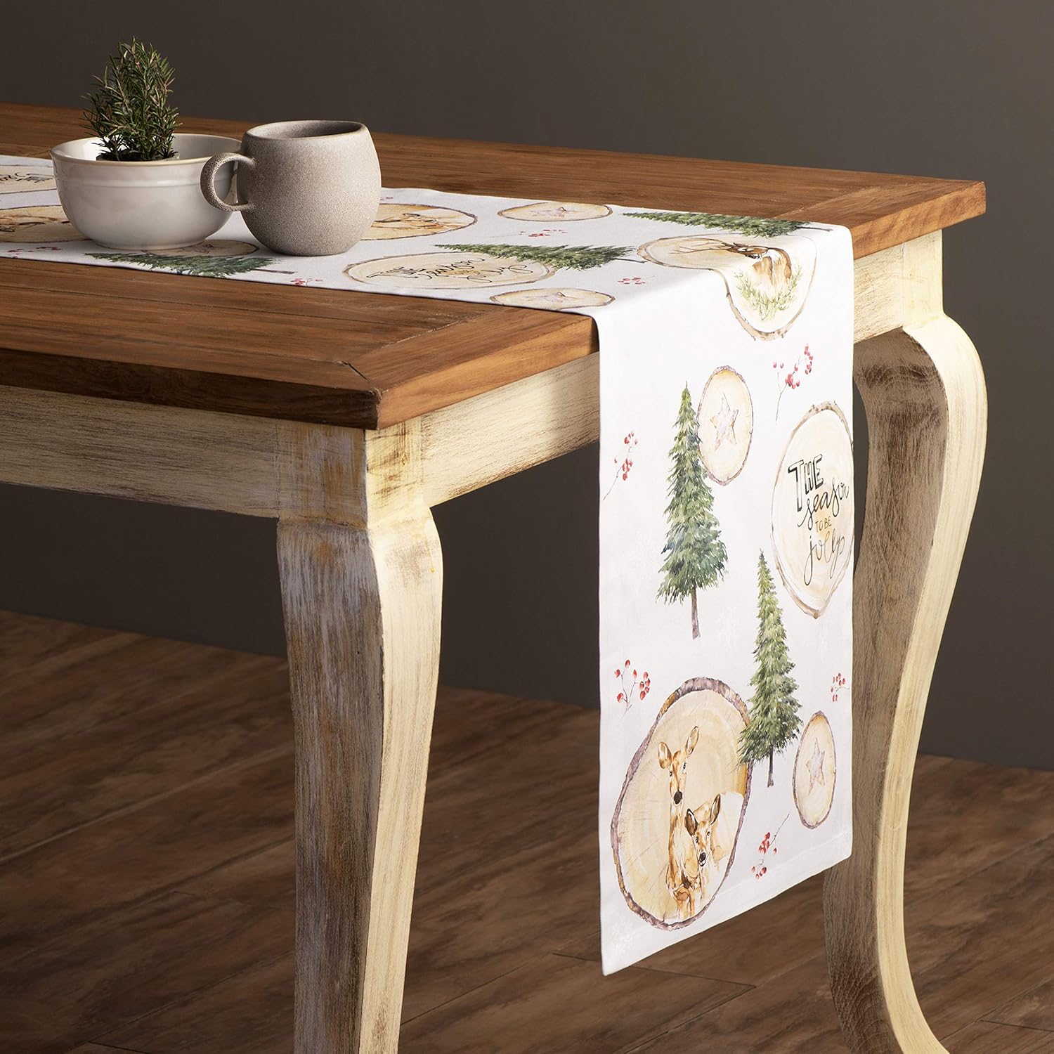 Maison d' Hermine Table Runner 100% Cotton Single Layer Table Runners 90 inches Long for Thanksgiving Christmas Decorations Home Kitchen Dining Party Wedding (Mountain Life, 14.5" x 90")