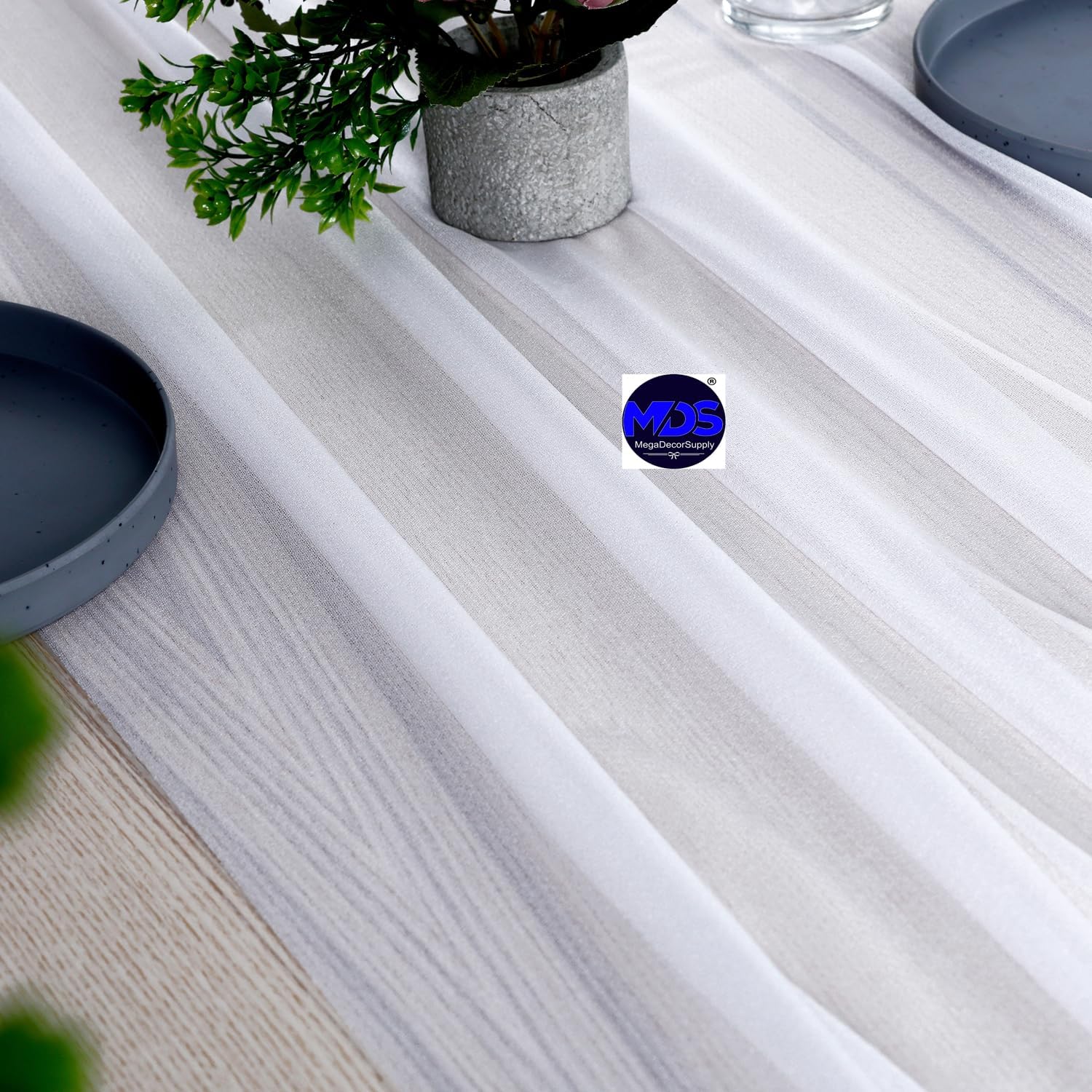 MDS Halloween Chiffon Table Runner - 15 Pack, 29 x 170 Inches, 14ft Each - Sheer Spooky Table Runners for Haunted House Parties, Trick-or-Treat Tables, Witchy Décor, Wedding & Events - White