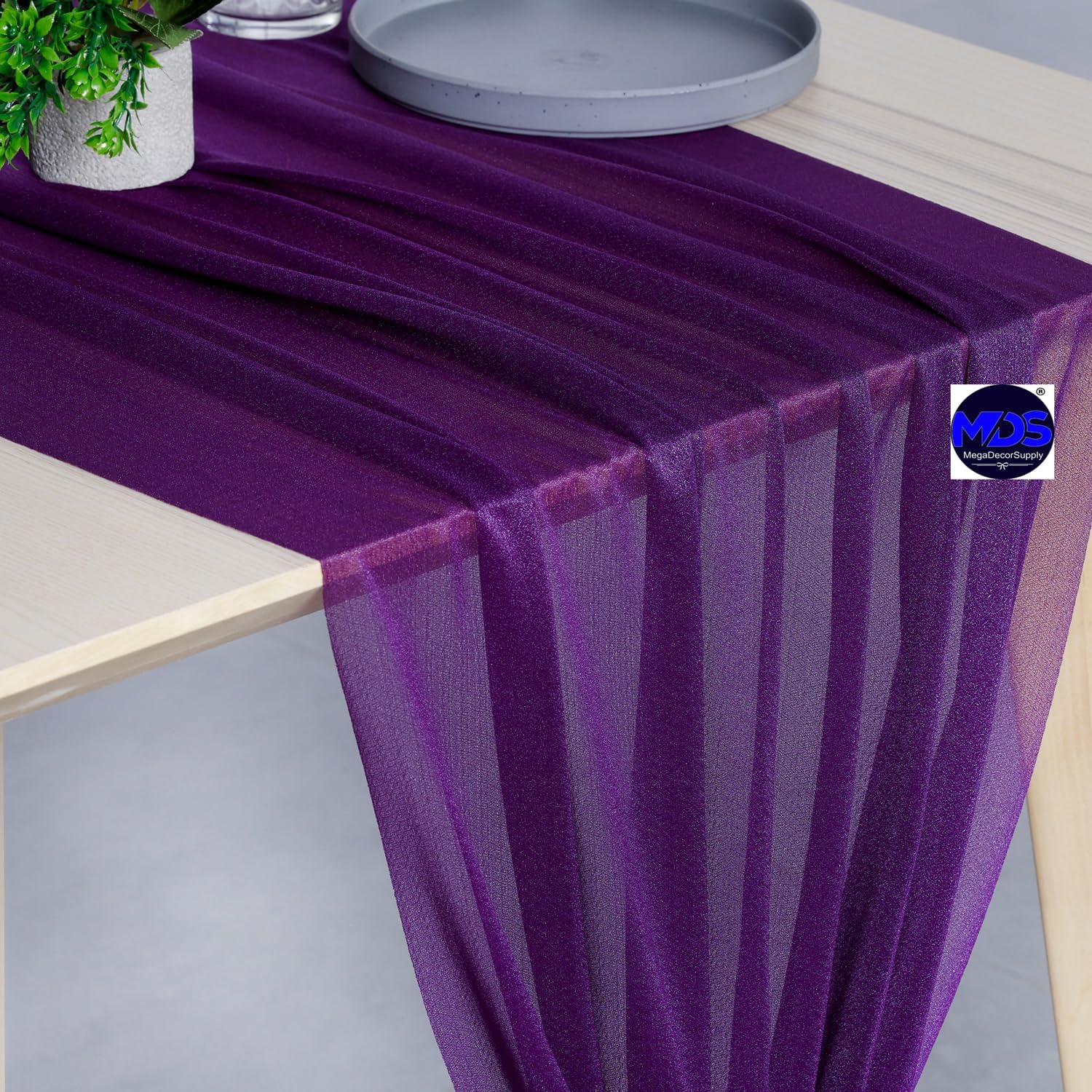 MDS Halloween Chiffon Table Runner - 5 Pack, 29 x 170 Inches, 14ft Each - Sheer Spooky Table Runners for Haunted House Parties, Trick-or-Treat Tables, Witchy Décor, Wedding & Events - Cadbury Purple