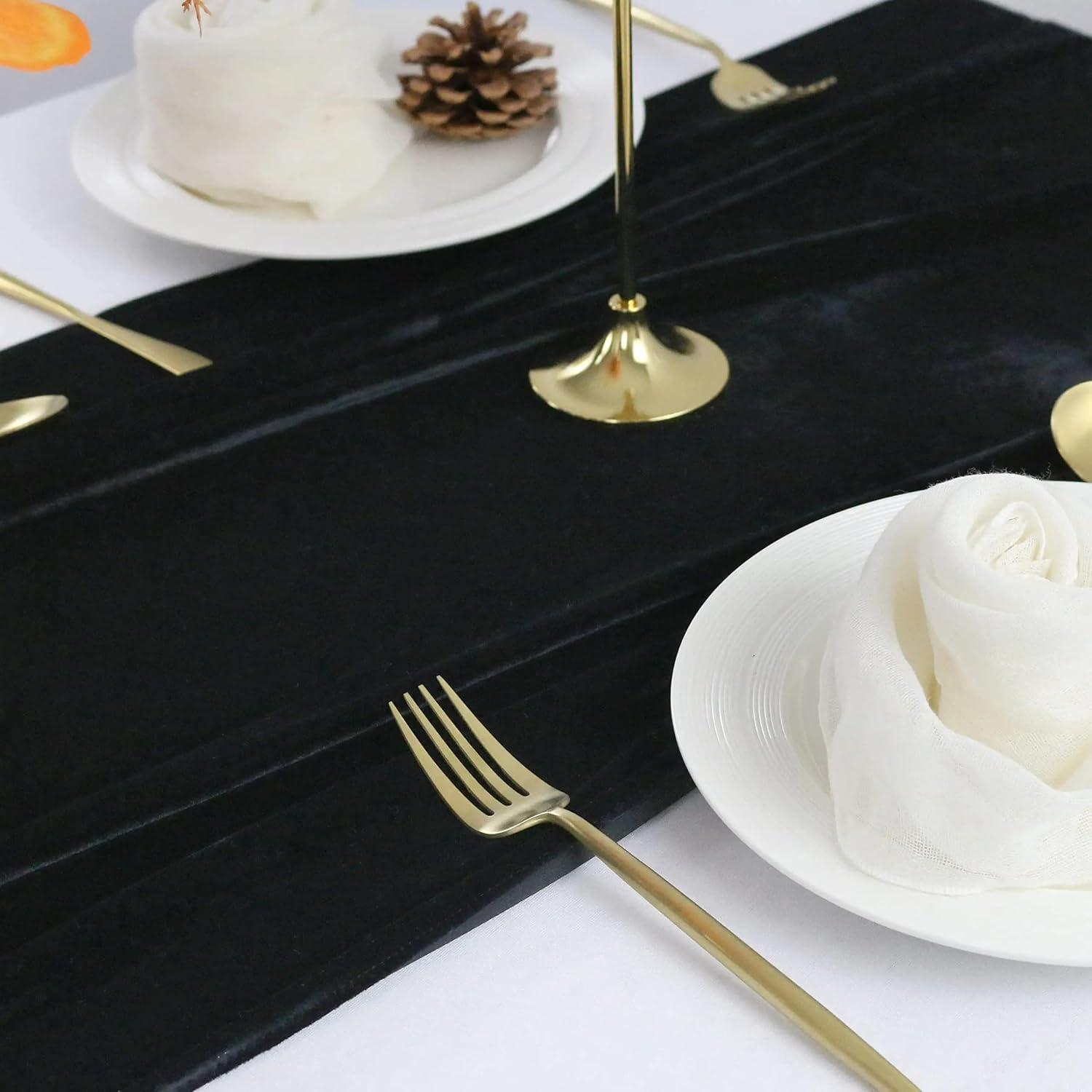 Velvet Table Runner, 5 Pack Luxurious Wedding Reception Decorations Soft Velvet Fabric Table Linen Overlay for Party (20 x 120 inch, Black)