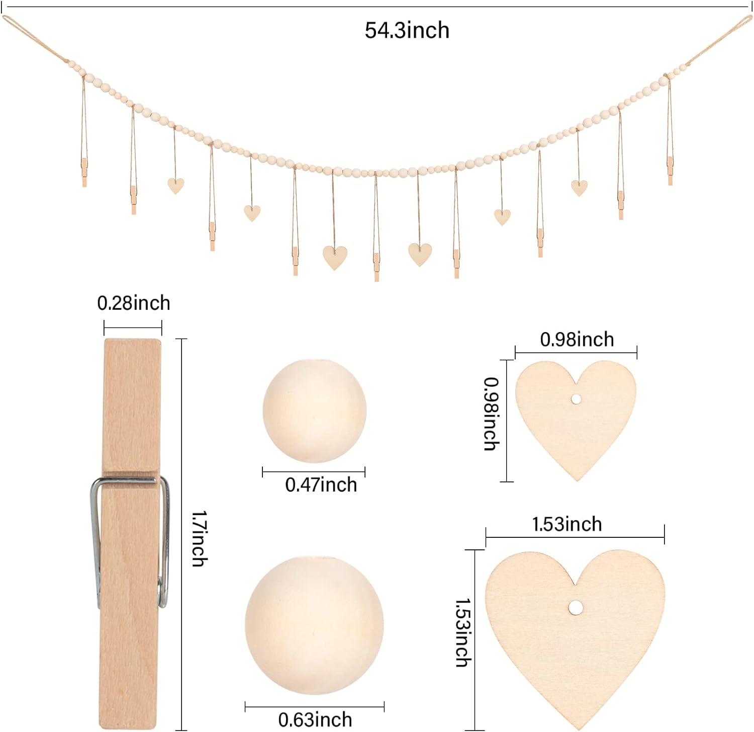 • Product Size: The total length of wood bead garland is 54.3", the wooden beads in 2 sizes, the diameter of beads is 0.47", 0.63", the wooden Hearts Tags in 2 sizes, (Diameter 0.98" and 1.53"), It is long enough to fit any home decor and bring a cozy bohemian touch to adorn your living room, bedroom, fireplace and more