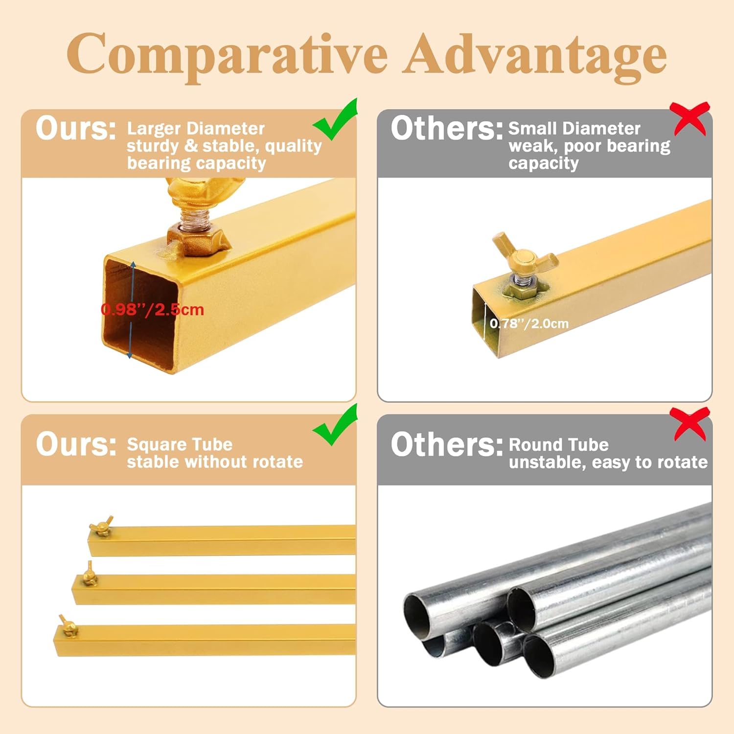 • 【Heavy Duty Backdrop Stand】8x8 ft/2.4x2.4 M square backdrop stand heavy duty with base is made of 1.0mm thick high toughness and anti-rust square steel pipe, more stable than circular tube without easily twist. Sturdy base legs provides a firm and balanced support of gold wedding arch stand, safe and secure.