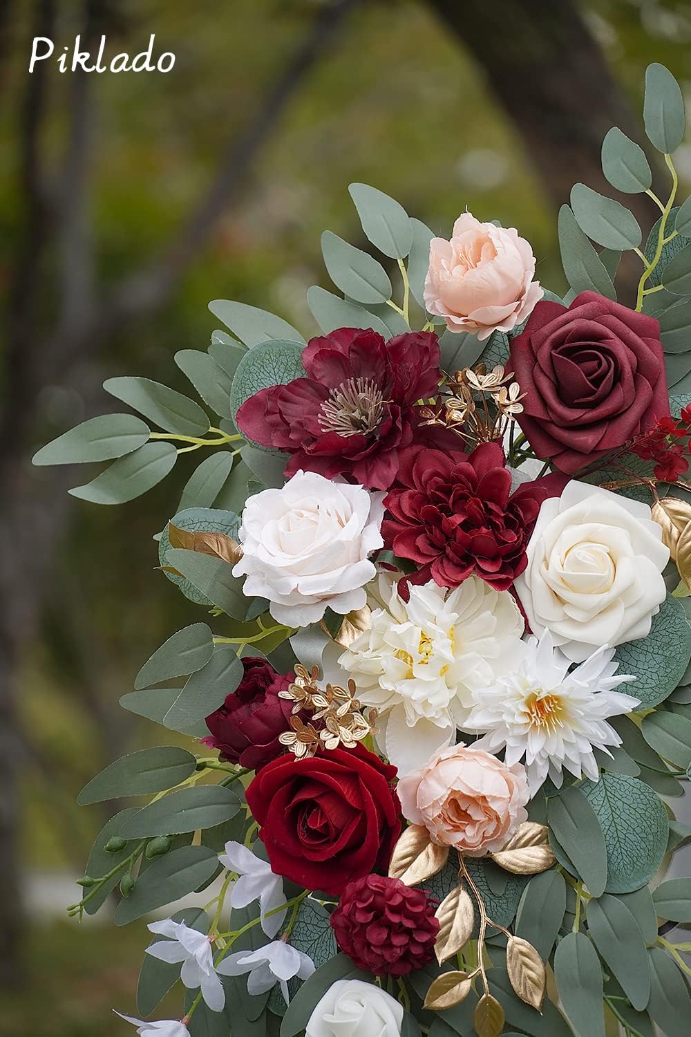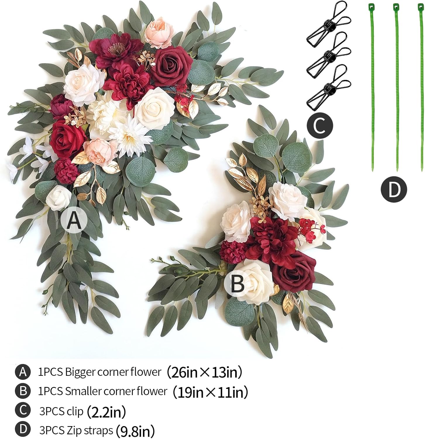 • ☘Material: This wedding flowers for arch is made of silk cloth and foam artificial flowers. They never wilt and look not only beautiful but very lifelike. Designed with a variety of elements for a rich sense of craftsmanship and design, perfect for your wedding arch decoration and welcome sign decoration.