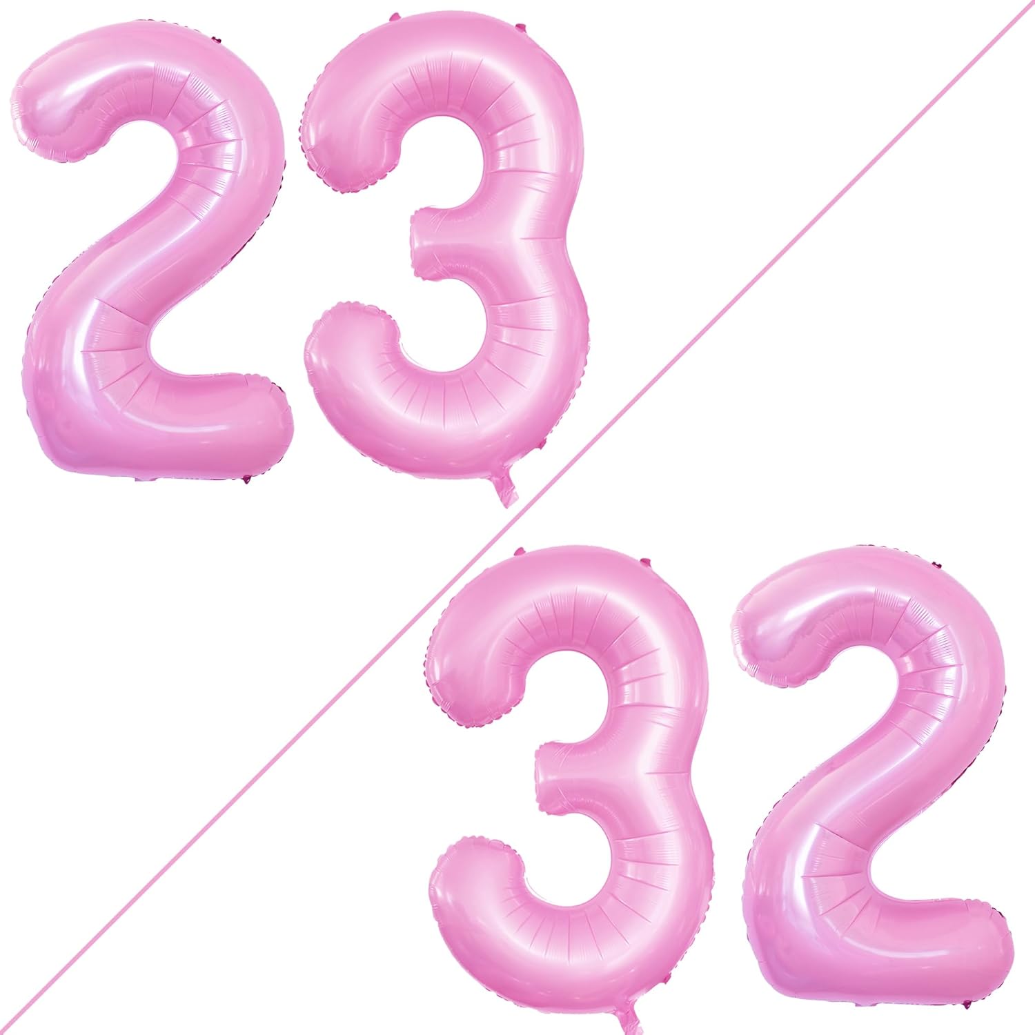 GOER Number 23 Balloons for 23rd Birthday Party Decorations,42 Inch Jumbo Foil Helium 32 Balloons for 32nd Birthday Party Decoration (Light Pink)