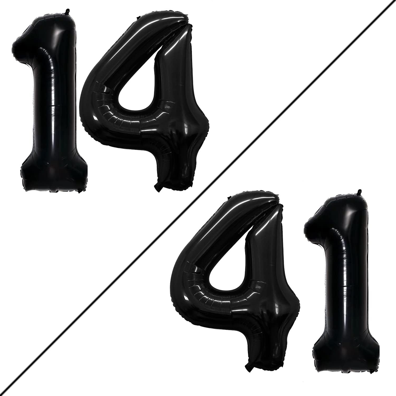 GOER Number 14 Balloons for 14th Birthday Sweet 14 Party Decorations,42 Inch Jumbo Foil Helium 41 Balloons for 41st Birthday Party Decoration (Black)