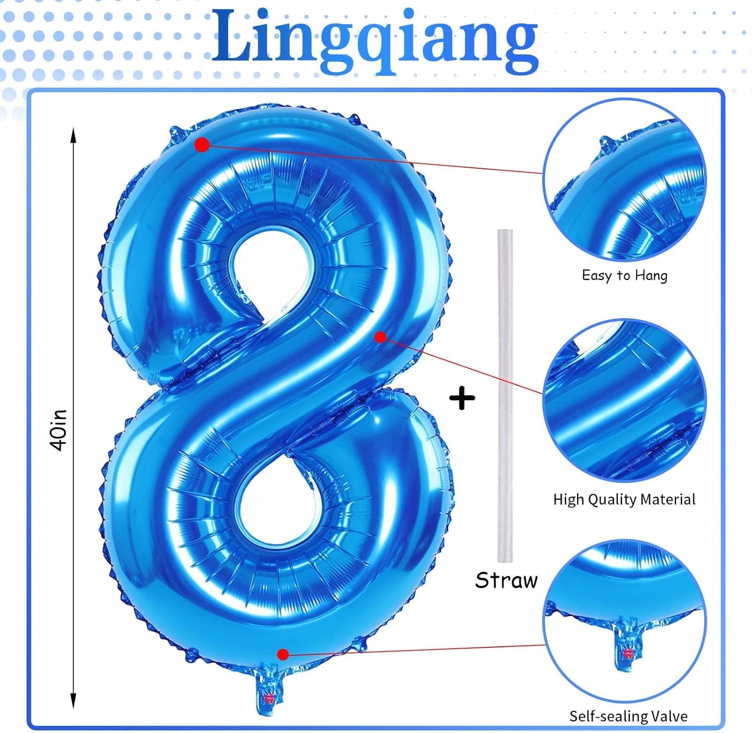 • πŸŽ‰ Blue Number 8 Balloon πŸŽ‰ - You will get 1pc 40 inch mylar foil number 8 balloon and 1pc straw. Perfect for 8th 18th 28th 80th 85th birthday or anniversary party decorations supplies.