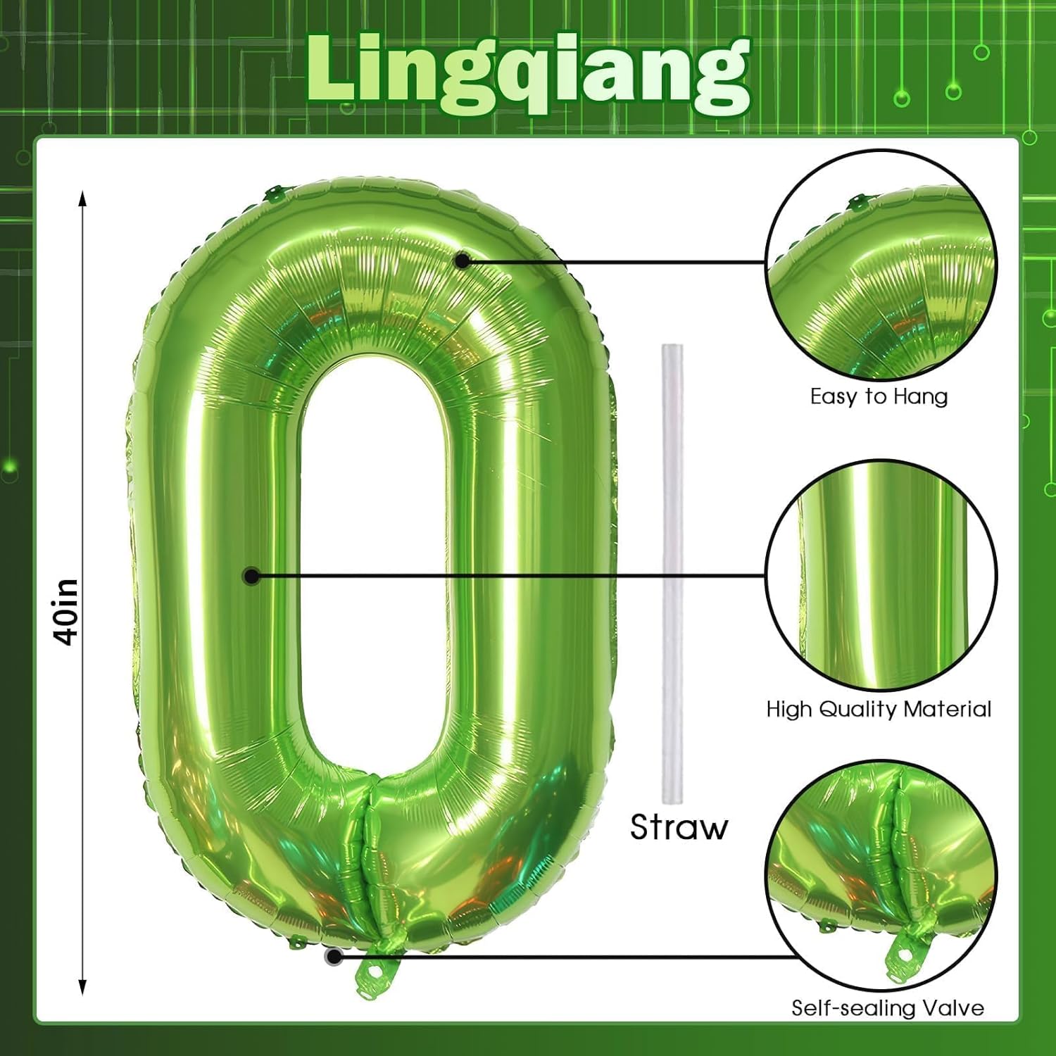 • πŸŽ‰ Green Number 0 Balloon πŸŽ‰ - You will get 1pc 40 inch mylar foil number 0 balloon and 1pc straw. Perfect for 10th 20th 30th 40th 50th 60th 70th birthday or anniversary party decorations supplies.