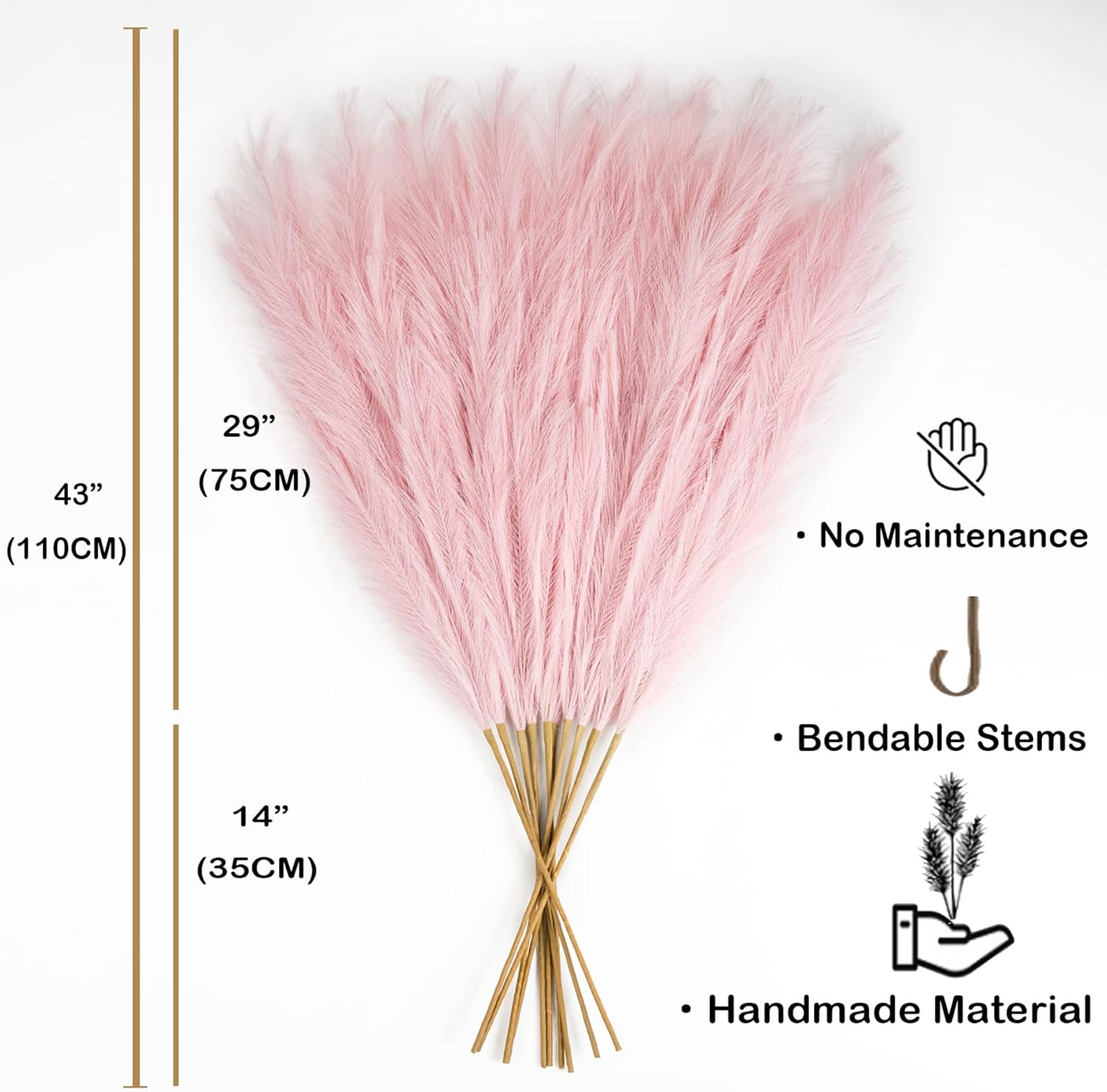 • Great Alternative for Real Pampas: Unlike dried pampas grass, our pompous grass does not shed like the real version, the long fibers on each stick are tied so strongly that they do not fall off. No allergens, no smell, without the maintenance cleaning and will last a long time